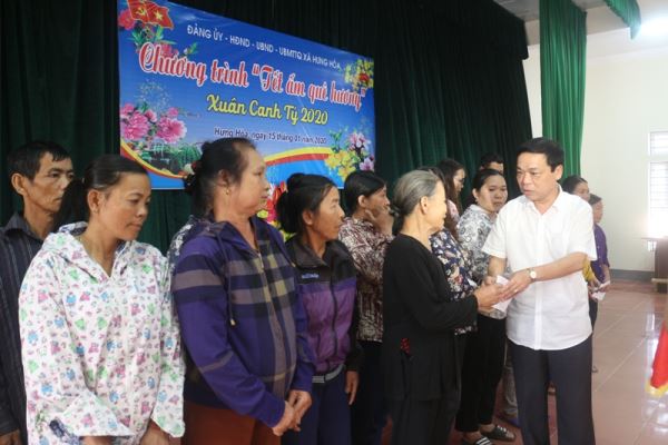 Tiến sĩ Dương Xuân Thao tặng quà Tết cho các hộ nghèo tại xã Hưng Hòa