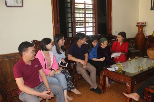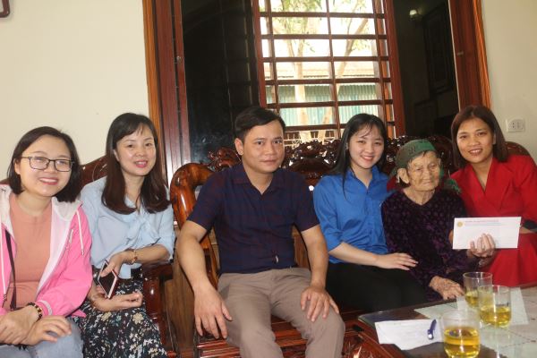 Đại diện BCH CĐ và Đoàn TN thăm hỏi bà mẹ VNAH Nguyễn Thị Hòe