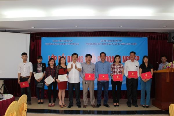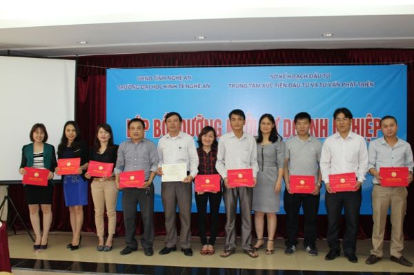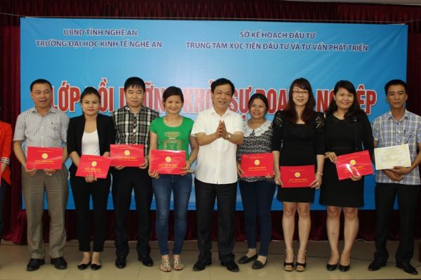 Chiều ngày 26/ 4/2015, tại Hội trường Tầng 4, Khách sạn Beijing 110 Mai Hắc Đế, Thành phố Vinh, Trường Đại học Kinh tế Nghệ An và Trung tâm xúc tiến đầu tư và tư vấn phát triển - Sở Kế hoạch đầu tư tỉnh Nghệ An đã long trọng tổ chức buổi Lễ Bế giảng và trao Giấy chứng nhận cho 110 doanh nhân đến từ các doanh nghiệp trên địa bàn tỉnh Nghệ An tham gia khóa học Bồi dưỡng doanh nhân theo Đề án bồi dưỡng đội ngũ doanh nhân Nghệ An giai đoạn 2012 – 2015 của UBND tỉnh Nghệ An.