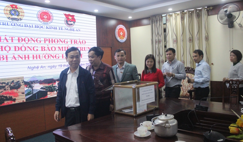 Phát huy tinh thần “Tương thân tương ái - lá lành đùm lá rách” và để cùng nhau chia sẻ với những khó khăn, mất mát của đồng bào ở các tỉnh Quảng Bình, Quảng Trị, Thừa Thiên Huế nói chung, trong đó có gia đình các sinh viên đang học tập tại trường Đại học Kinh tế Nghệ An nói riêng đã bị ảnh hưởng nặng nề bởi đợt mưa lũ. Ban Chấp hành Công đoàn trường Đai học Kinh tế Nghệ An đã phát động kêu gọi toàn thể cán bộ, giảng viên, sinh viên của Nhà trường, các nhà hảo tâm chung tay ủng hộ để nhân dân và các em sinh viên vùng bị ảnh hưởng nặng nề bởi thiên tai sớm vượt qua khó khăn, ổn định cuộc sống và yên tâm học tập.