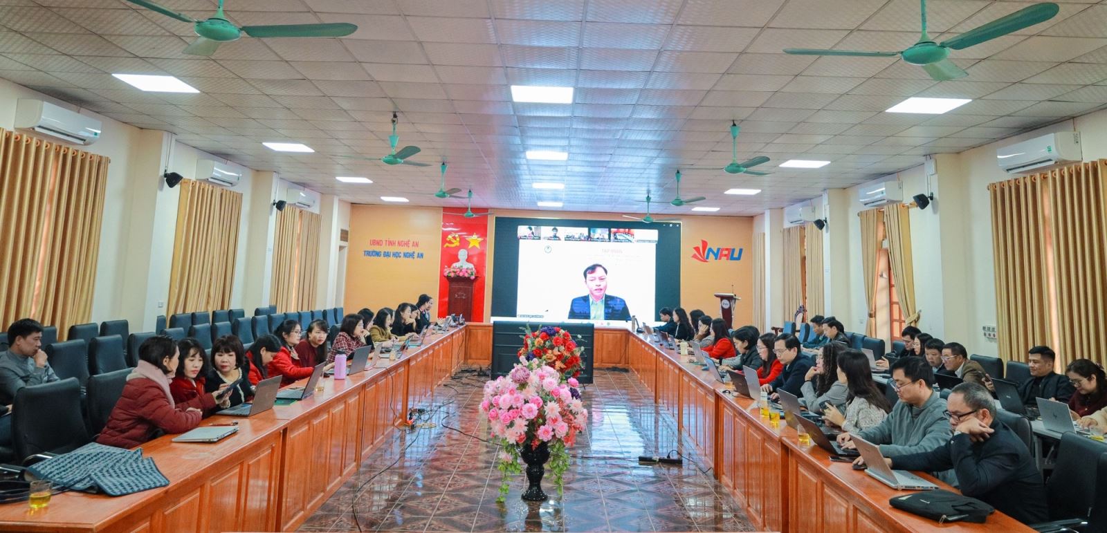 Nhằm triển khai hiệu quả Thông tư số 04/2025/TT-BGDĐT ngày 17/02/2025 của Bộ trưởng Bộ Giáo dục và Đào tạo, sáng ngày 27/12/2025, Trường Đại học Nghệ An đã tham gia Hội nghị tập huấn hướng dẫn công tác đánh giá chương trình đào tạo theo bộ tiêu chuẩn kiểm định chất lượng mới. Chương trình do Trung tâm Kiểm định chất lượng giáo dục Thăng Long chủ trì và được tổ chức theo hình thức trực tuyến.