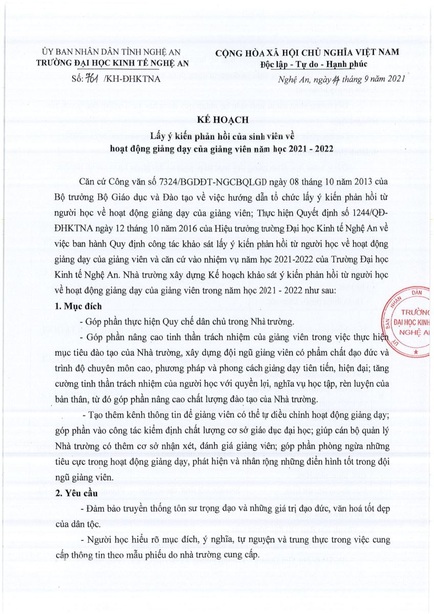 Kế hoạch lấy ý kiến phản hồi của sinh viên về hoạt động giảng dạy của giảng viên năm học 2021-2022 21/09/2021 10:39 5609 lượt xem