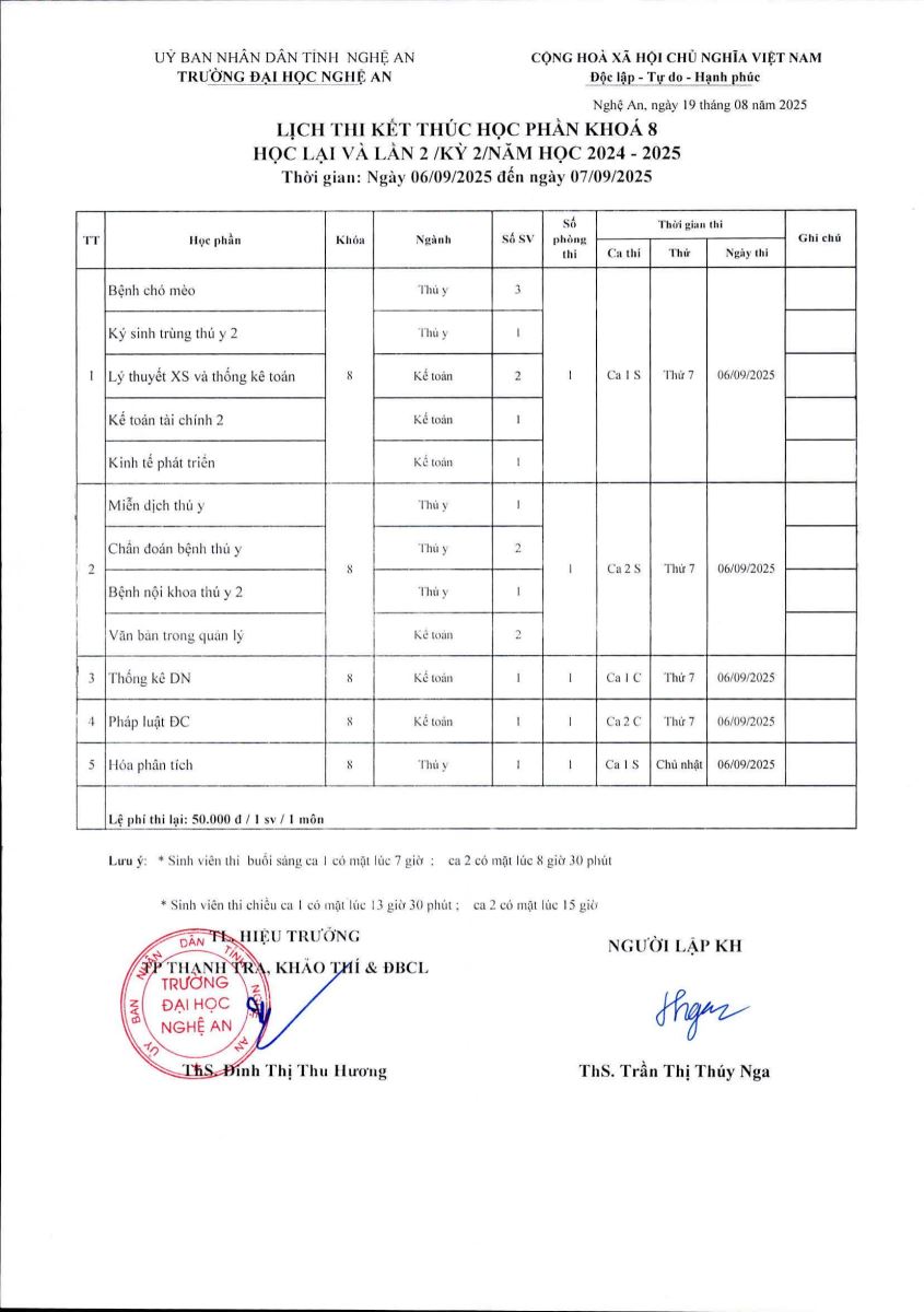 Lịch thi kết thúc học phần Khóa 8 học lại và lần 2, kỳ 2, năm học 2024-2025 19/08/2025 09:19 3039 lượt xem