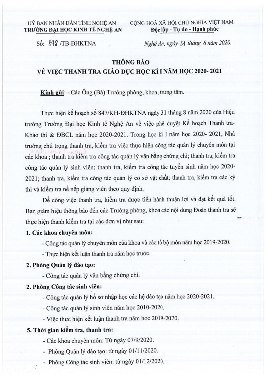 2. Thông báo về việc thanh tra giáo dục HK1 năm học 2020-2021