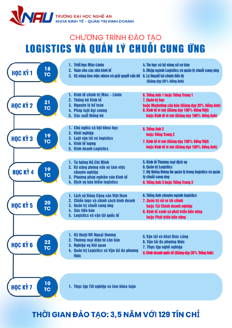 Ngành Logistics và Quản lý chuỗi cung ứng (Mã ngành: 7510605) được ví như “xương sống” của nền kinh tế hiện đại, giữ vai trò kết nối sản xuất, phân phối và tiêu dùng. Tại Trường Đại học Nghệ An, chương trình đào tạo ngành học này được thiết kế theo định hướng ứng dụng, cập nhật với thực tiễn doanh nghiệp và đáp ứng yêu cầu hội nhập toàn cầu.