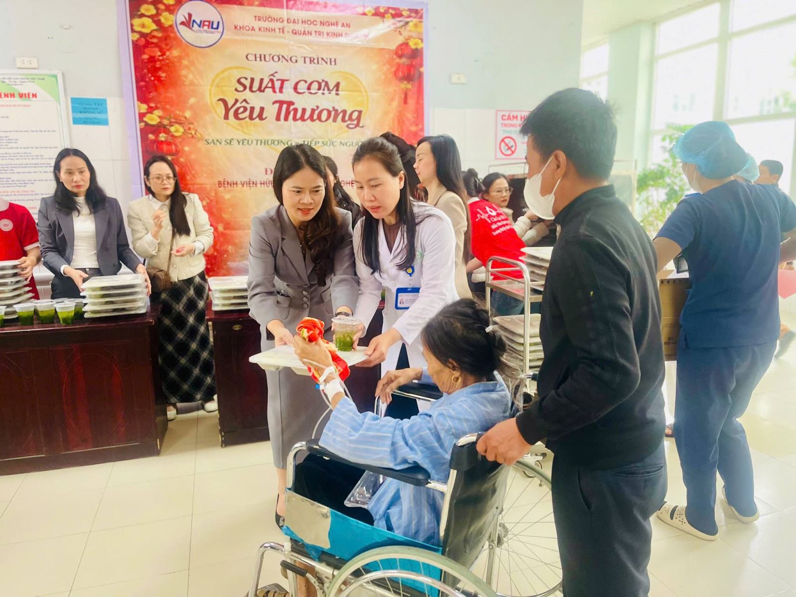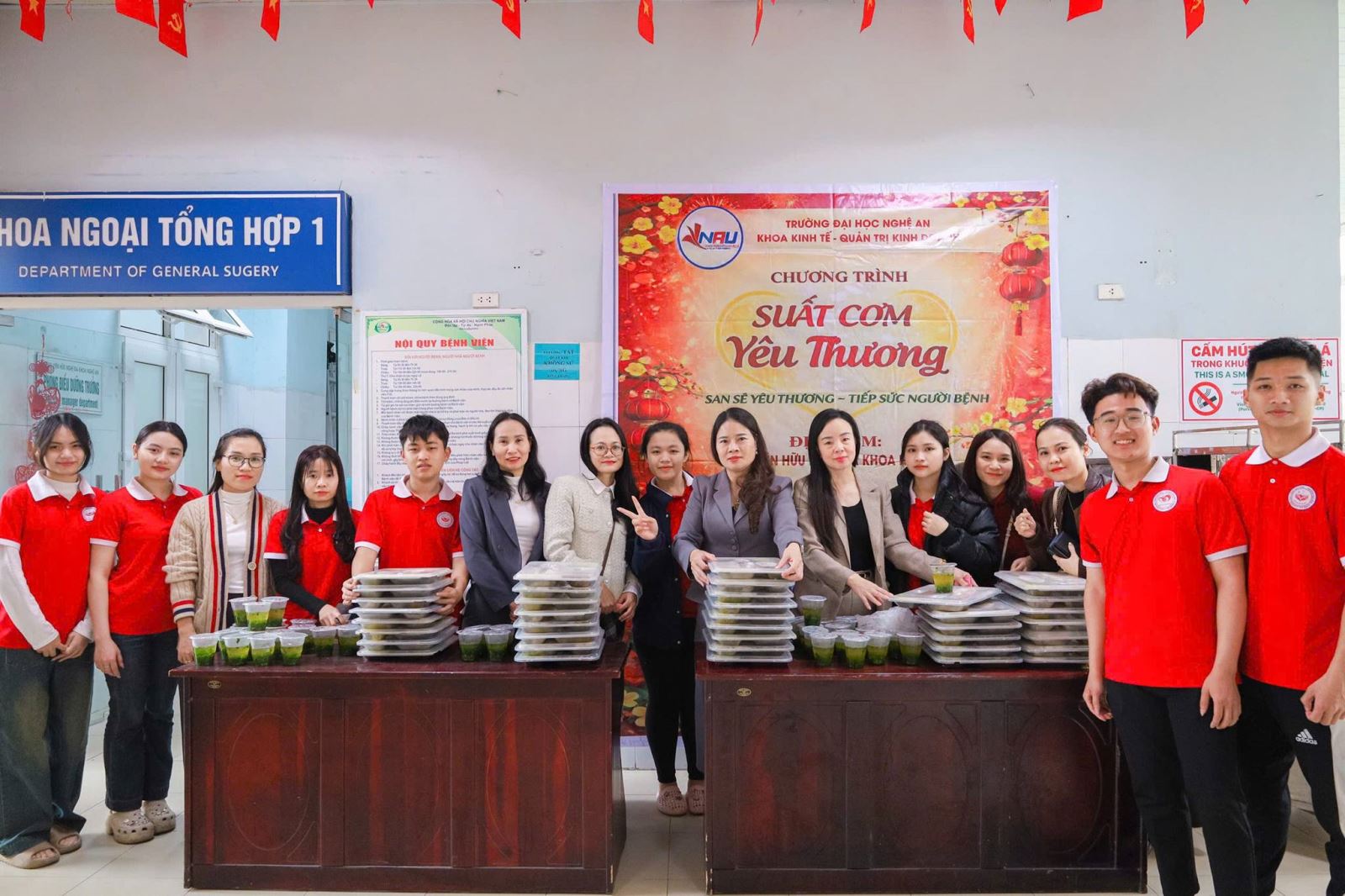 Sáng ngày 02/02/2026, Khoa Kinh tế – Quản trị kinh doanh, Trường Đại học Nghệ An đã tổ chức chương trình thiện nguyện “Suất cơm yêu thương” tại Bệnh viện Hữu nghị Đa khoa Nghệ An, nhằm sẻ chia khó khăn và động viên tinh thần các bệnh nhân đang điều trị tại bệnh viện.