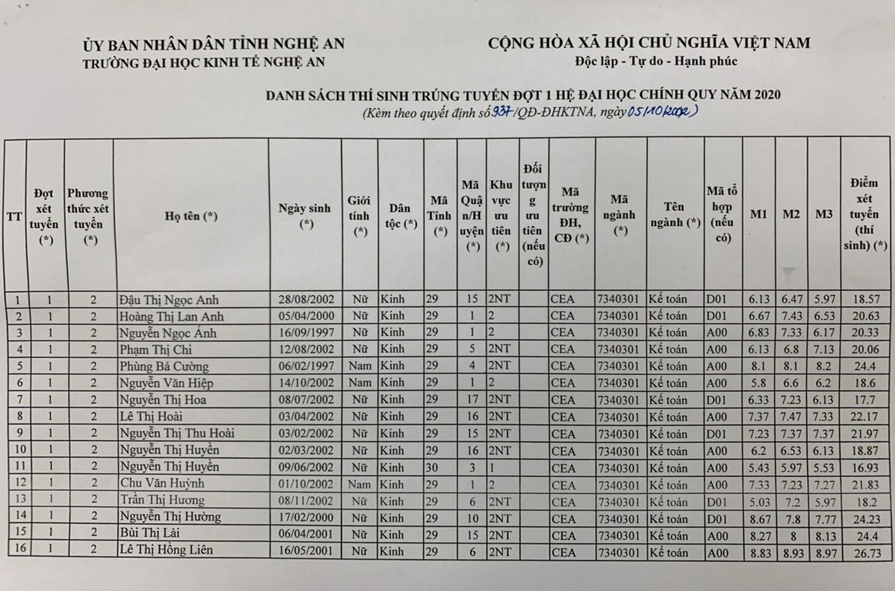 Danh sách trúng tuyển Đại học chính quy đợt 1 năm 2020 05/10/2020 05:03 5093 lượt xem DANH SÁCH TRÚNG TUYỂN ĐH CHÍNH QUY ĐỢT 1 NĂM 2020