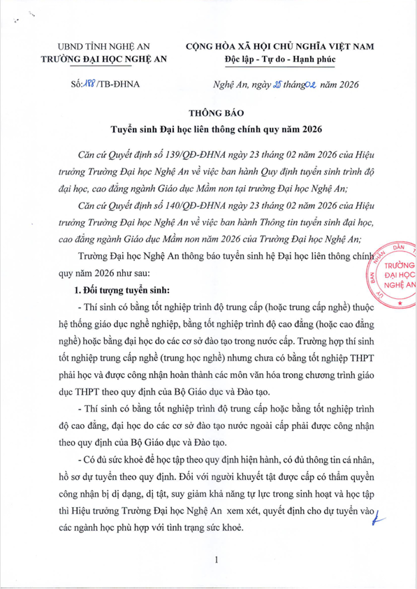 THÔNG BÁO TUYỂN SINH ĐẠI HỌC LIÊN THÔNG HỆ VỪA LÀM VỪA HỌC ĐỢT 1 NĂM 2026