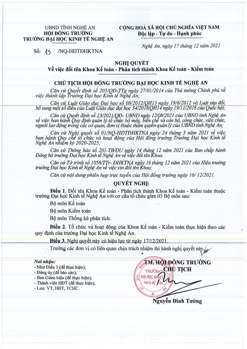 Nghị quyết về việc đổi tên Khoa Kế toán - Phân tích thành Khoa Kế toán - Kiểm toán 17/12/2021 11:46 5166 lượt xem