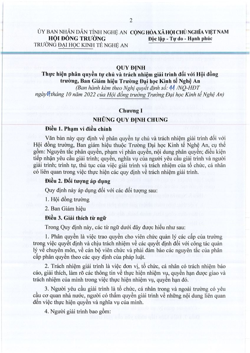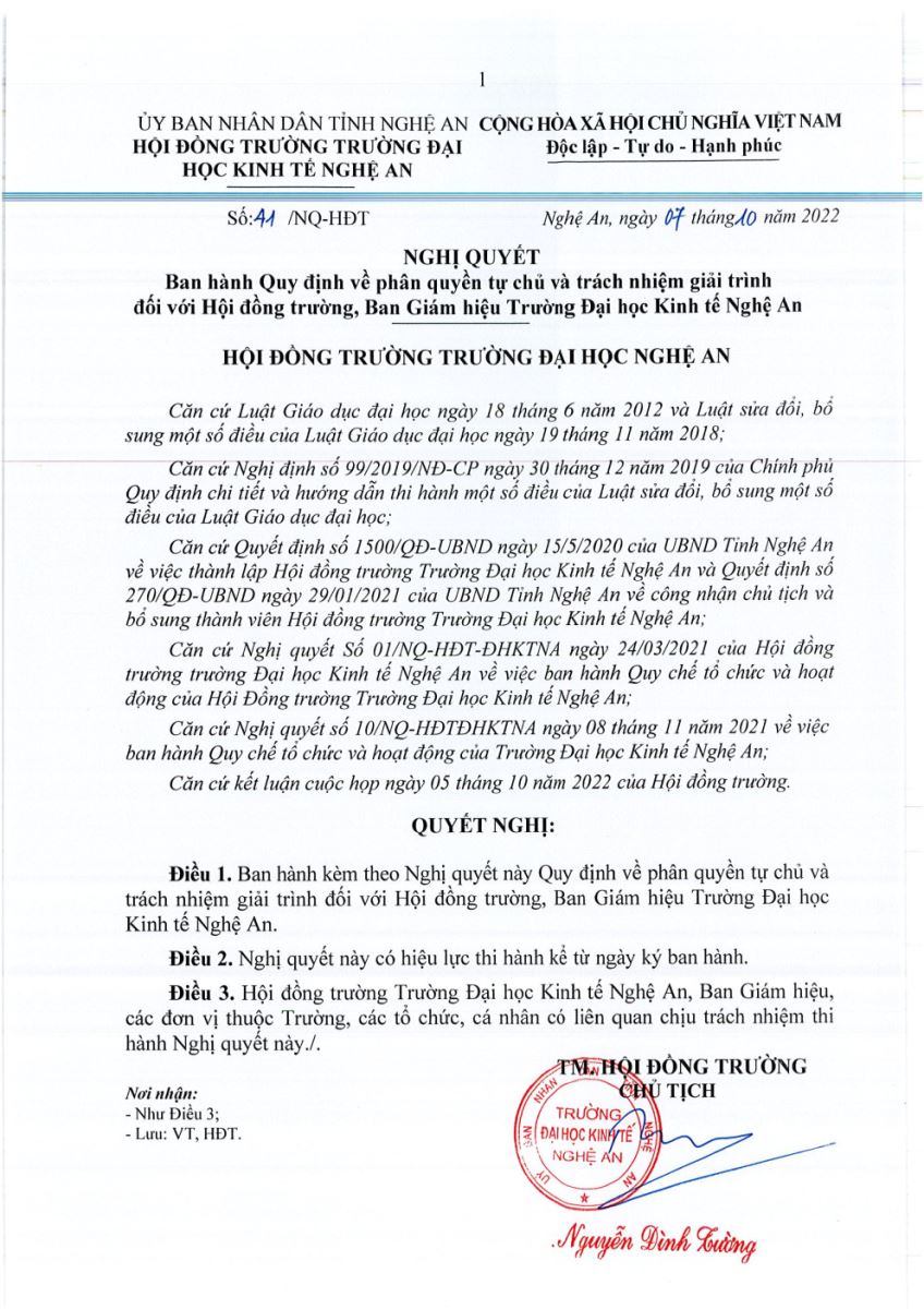 Quy định về phân quyền tự chủ và trách nhiệm giải trình đối với Hội đồng trường, Ban Giám hiệu Trường ĐHKTNA 20/10/2022 04:01 5409 lượt xem