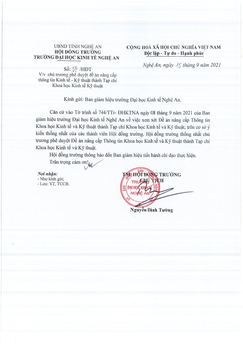 Công văn chủ trương phê duyệt đề án nâng cấp Thông tin Kinh tế và Kỹ thuật thành Tạp chí khoa học Kinh tế và Kỹ thuật 06/10/2021 10:50 5128 lượt xem