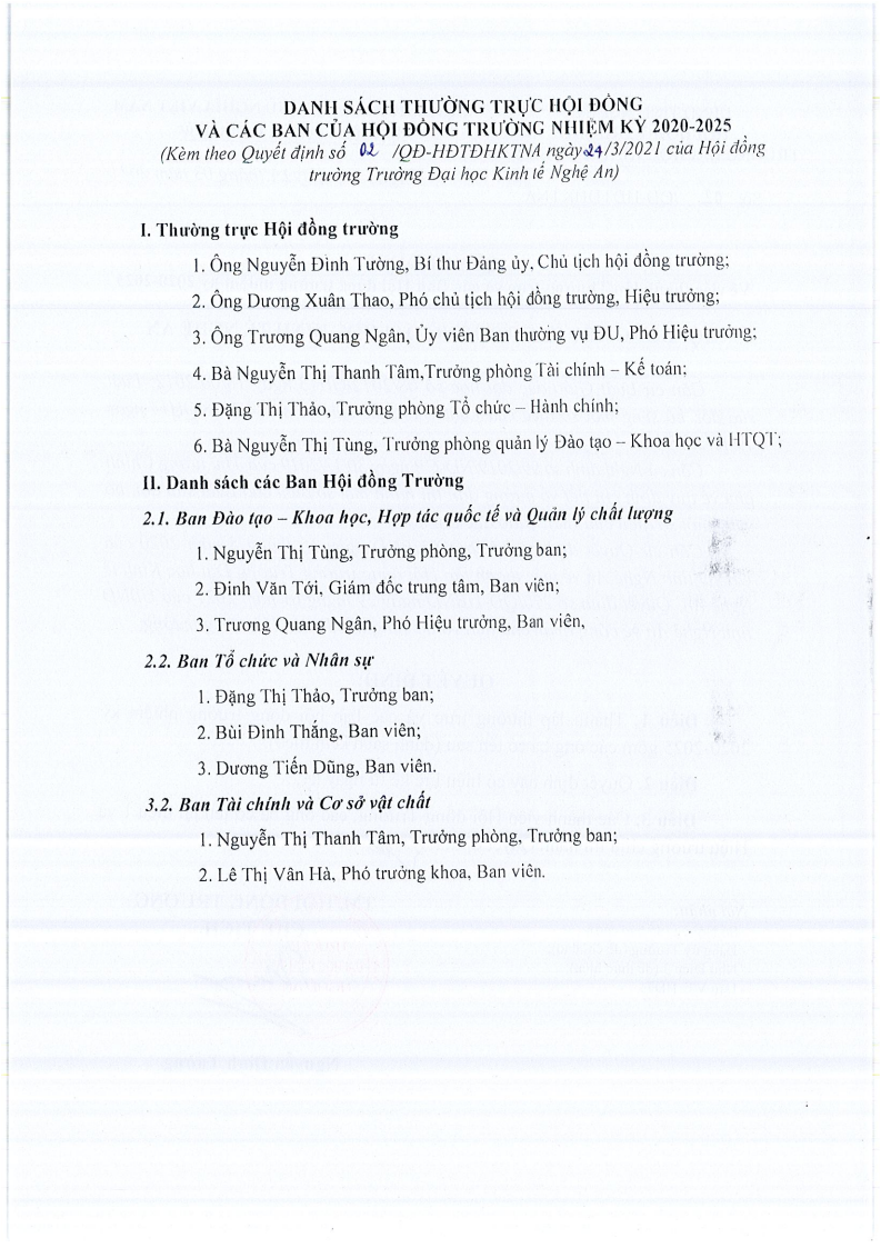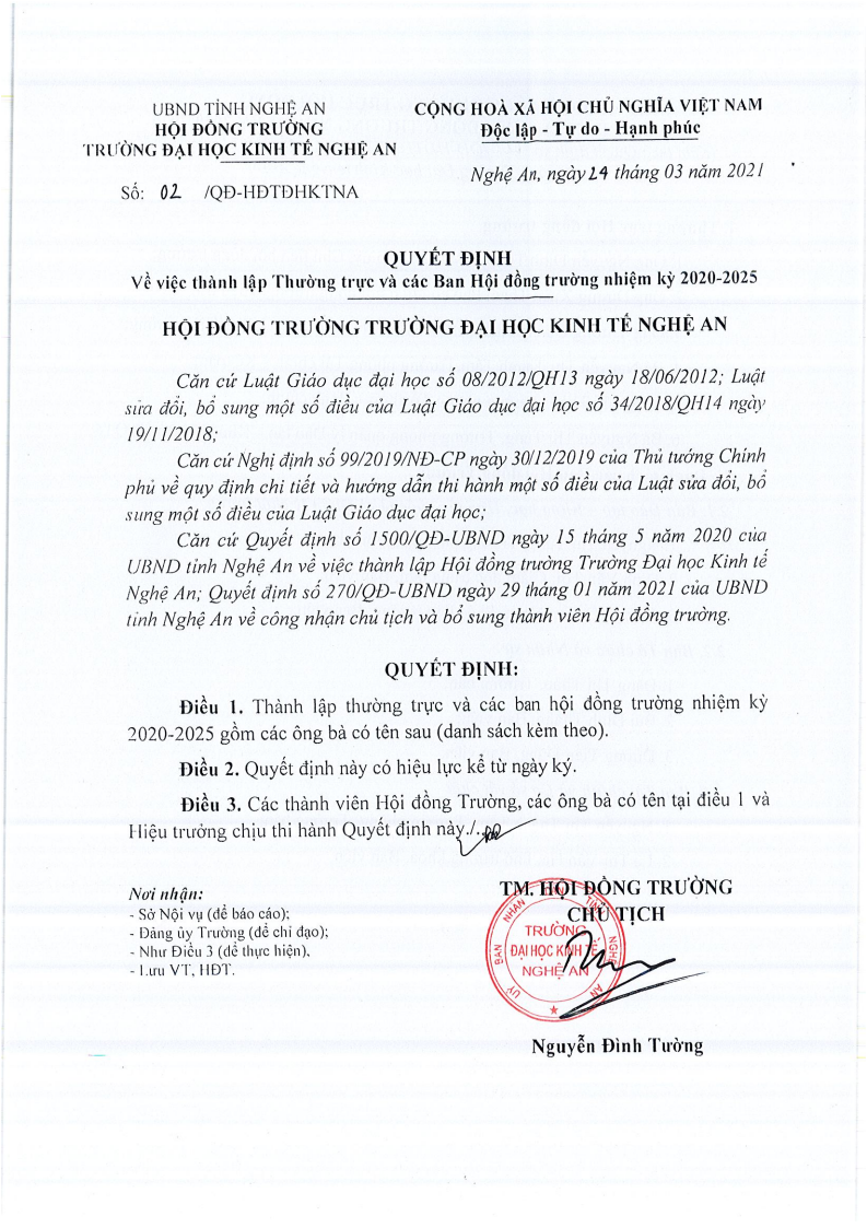 Quyết định thành lập Thường trực và các Ban Hội đồng trường nhiệm kỳ 2020-2025 03/04/2021 03:29 5642 lượt xem