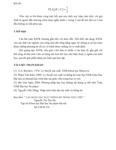 Vận dụng xác suất thống kê trong thực tiễn