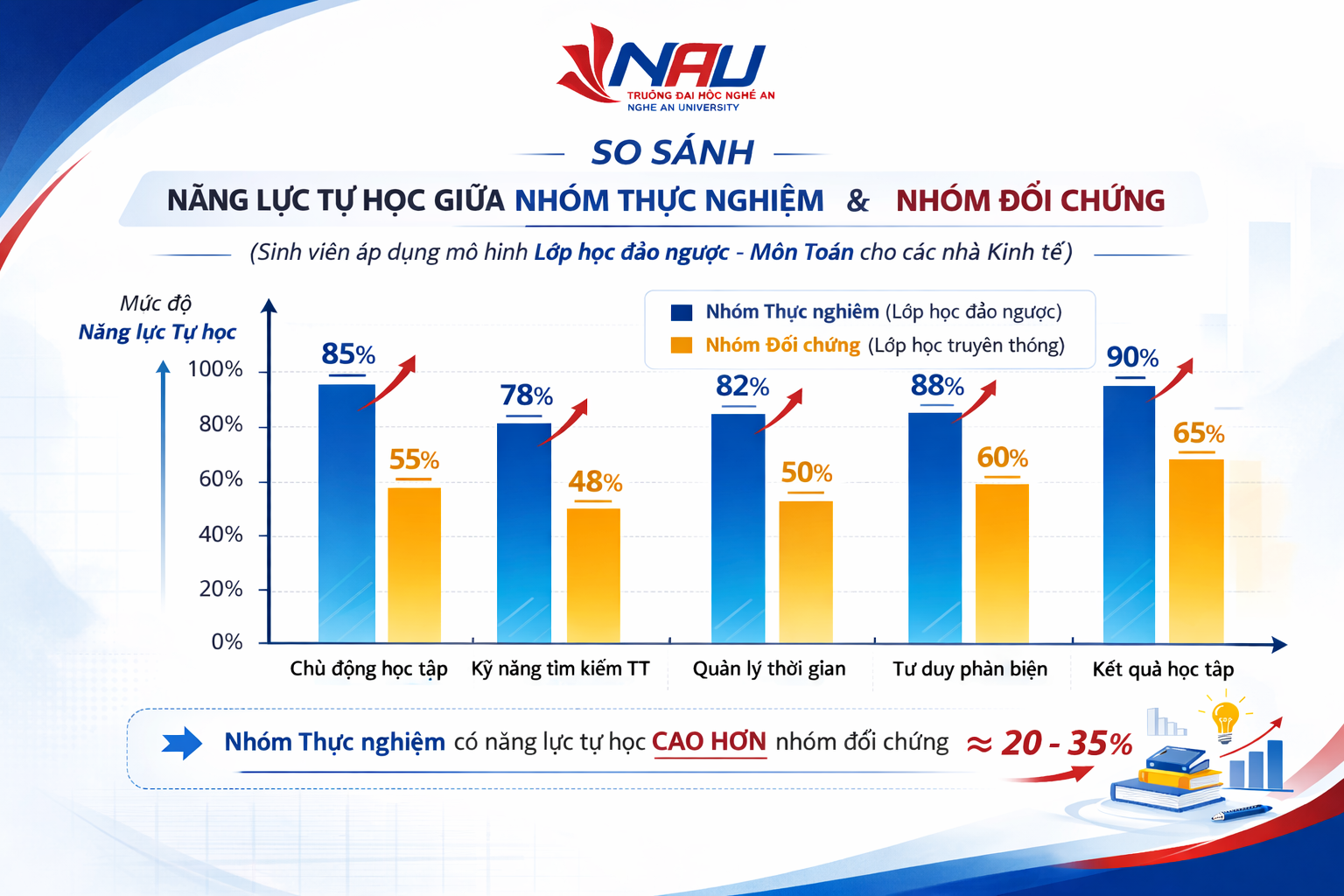- Nâng cao rõ rệt năng lực tự học: Sinh viên áp dụng mô hình "Đảo ngược" có điểm trung bình về kỹ năng lập kế hoạch và tự đánh giá cao hơn hẳn.