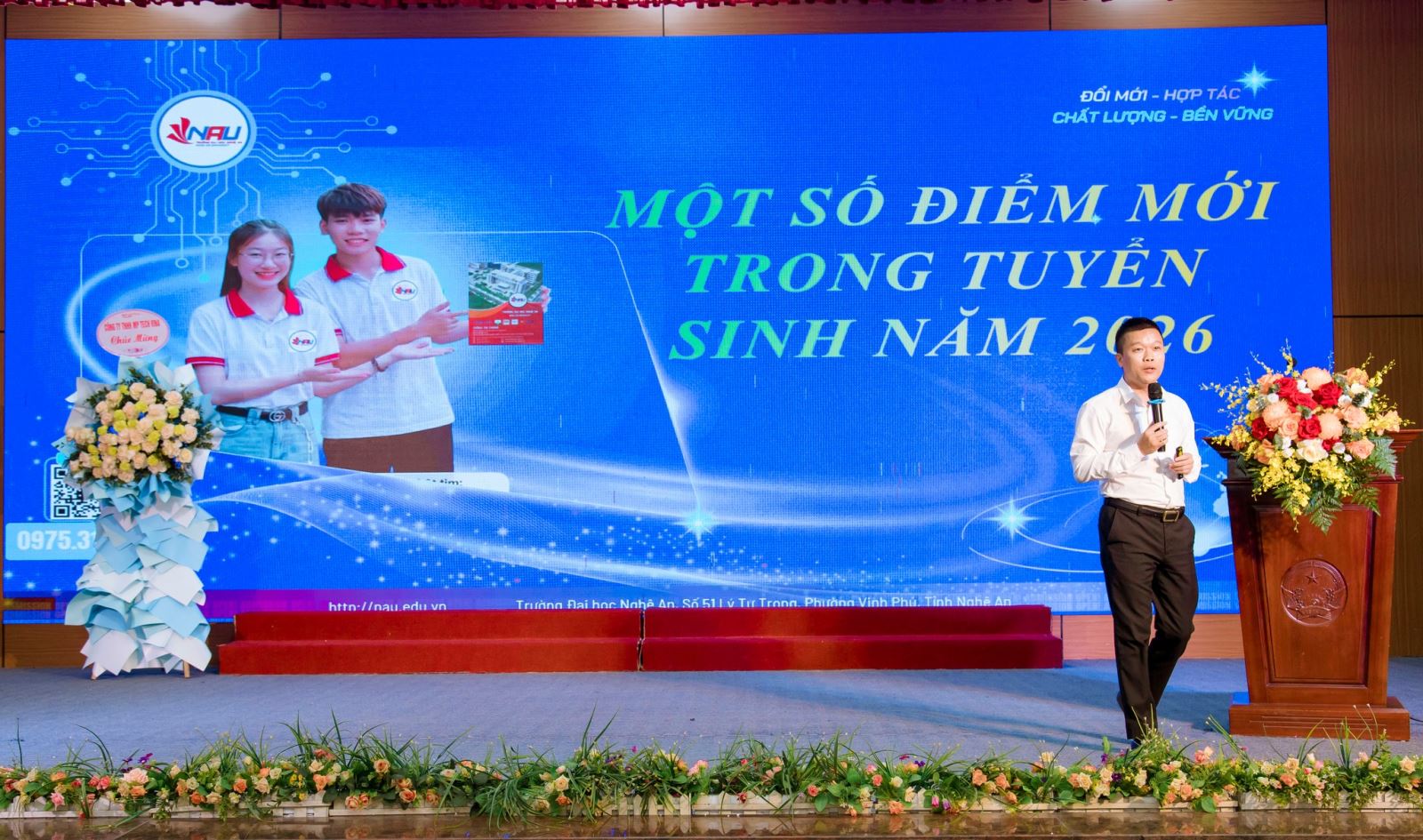 Vào chiều ngày đẹp trời cuối tháng 3, tại Sân Hội trường A1 và Sân nhà B, Khoa CNTT đã cùng Trường Đại học Nghệ An tổ chức thành công chương trình “Định hướng nghề nghiệp cho học sinh THPT và Ngày hội việc làm năm 2026”. Đây không chỉ là một sự kiện thường niên mà còn là lời khẳng định về chất lượng đào tạo gắn liền với nhu cầu thực tế của thị trường lao động.