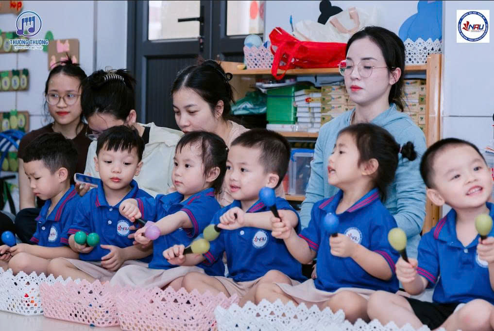 Trường Mầm non Thực hành Sư phạm – Trường Đại học Nghệ An đã tổ chức buổi tổng kết khóa học Cảm thụ Âm nhạc với nhiều cung bậc cảm xúc đáng nhớ. Đây không chỉ là dịp để các con thể hiện những gì đã học, mà còn là cơ hội để bố mẹ cùng hòa mình vào thế giới âm nhạc đầy màu sắc của trẻ thơ.