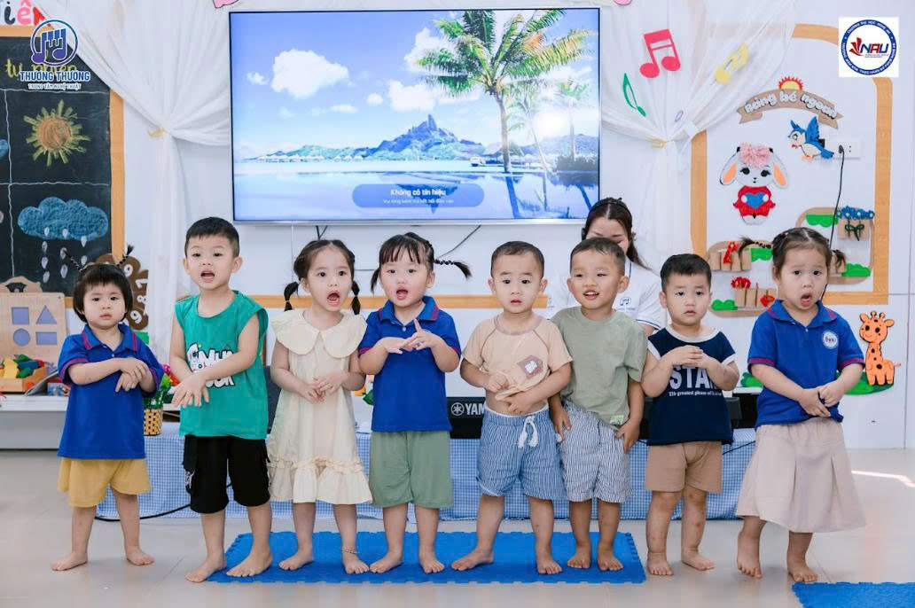 Ngay từ những phút đầu tiên, không gian lớp học như được “thắp sáng” bởi tiếng cười, ánh mắt háo hức và những giai điệu quen thuộc. Các bé tự tin bước vào hoạt động với sự dẫn dắt nhẹ nhàng, linh hoạt của giáo viên, thể hiện khả năng cảm nhận âm nhạc thông qua vận động, biểu cảm và tương tác.