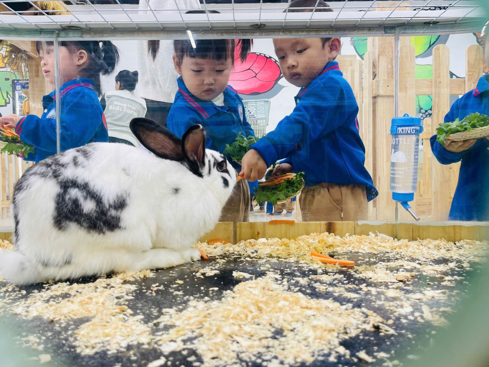 Tại nông trại, các bé không chỉ được dạo chơi, tham quan, ngắm nhìn những con vật quen thuộc mà còn được trực tiếp chăm sóc chúng như cho ăn, quan sát cách chúng sinh hoạt, lắng nghe âm thanh, chạm tay nhẹ nhàng và gọi tên từng con vật theo cách hồn nhiên nhất của tuổi thơ. Những ánh mắt tò mò, những nụ cười rạng rỡ và tiếng reo vui không ngớt đã biến Kids Farm thành một “lớp học” đầy sinh động.