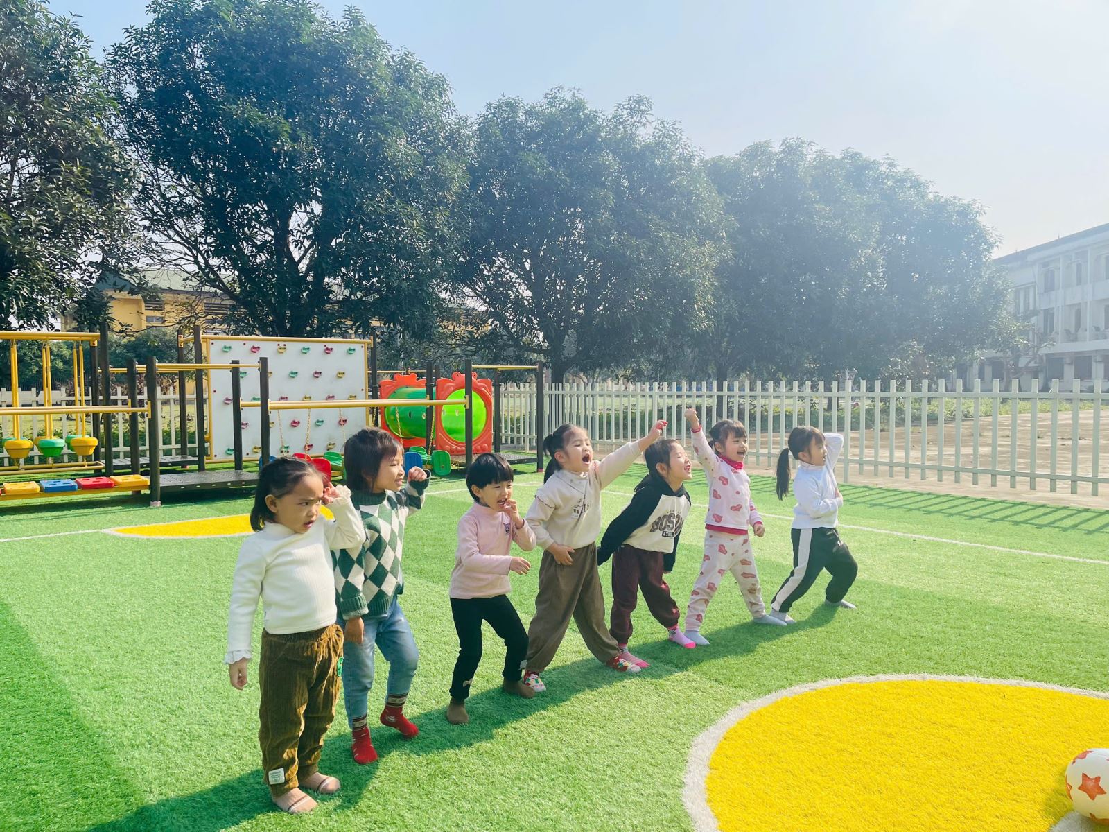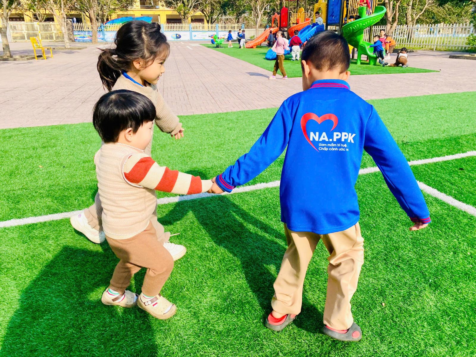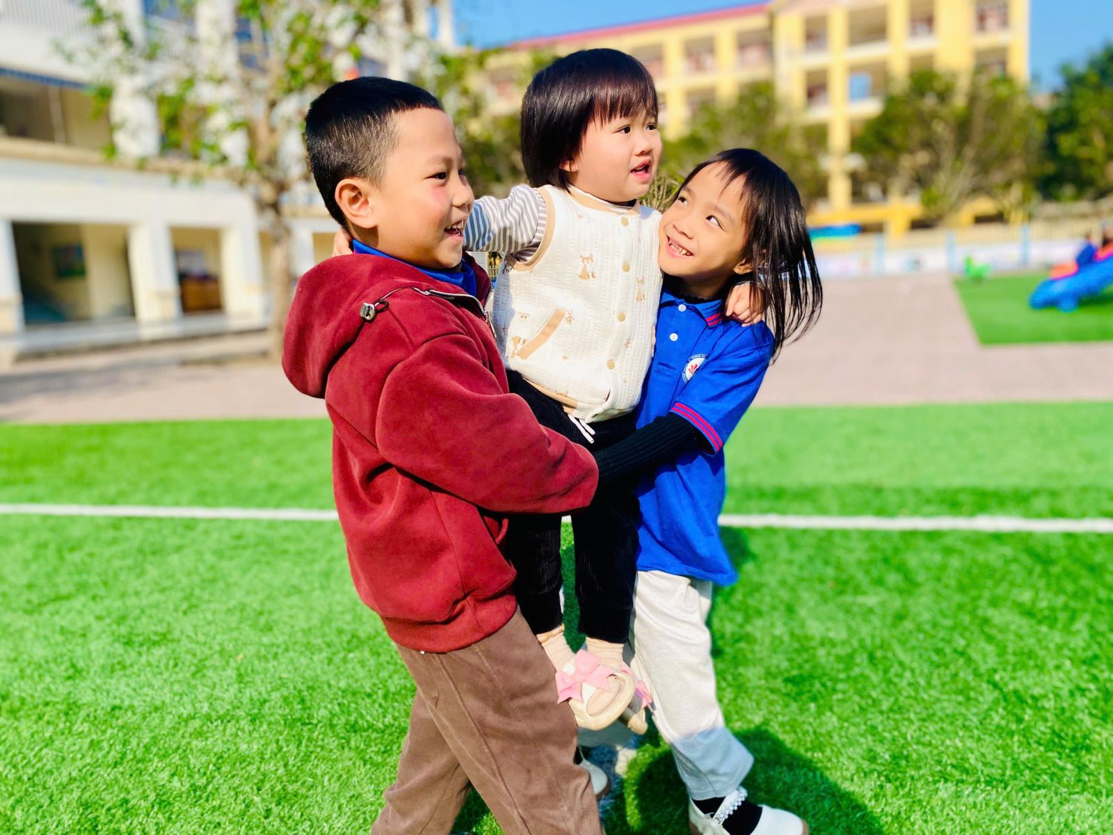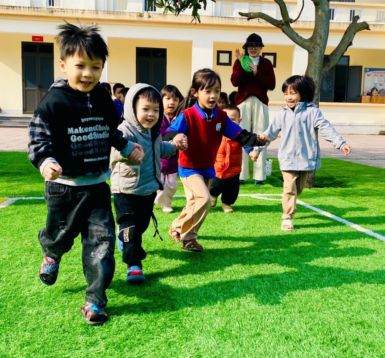 Các hoạt động được thiết kế linh hoạt, khoa học và đảm bảo an toàn, khuyến khích trẻ mạnh dạn tham gia cùng bạn bè khác lớp. Thông qua những trải nghiệm chung ấy, trẻ không chỉ được vận động, khám phá mà còn từng bước phát triển các năng lực xã hội và cảm xúc. Các con học cách hợp tác, chờ đợi, sẻ chia, quan tâm và tôn trọng người khác – những giá trị nền tảng quan trọng cho quá trình hình thành nhân cách trong tương lai.