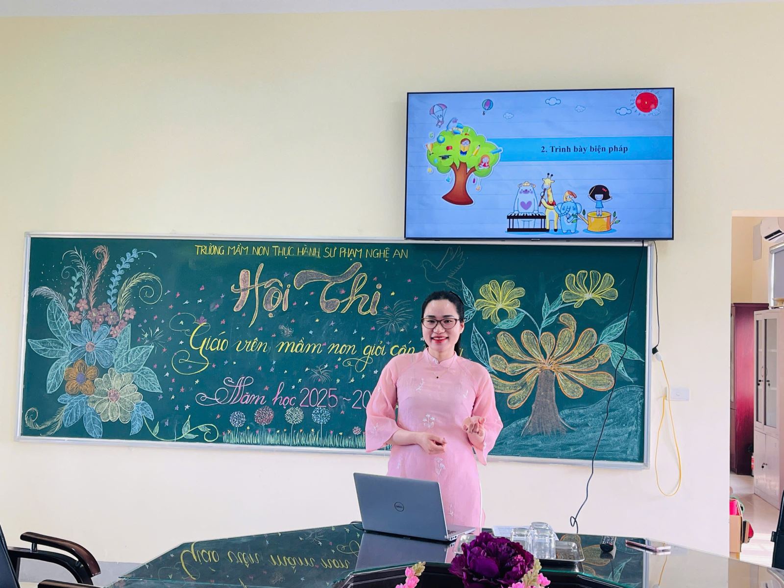 Phần thi “Trình bày biện pháp nâng cao chất lượng chăm sóc, giáo dục trẻ” đã góp phần khẳng định tinh thần đổi mới, sáng tạo và trách nhiệm nghề nghiệp của đội ngũ giáo viên Trường Mầm non THSP Nghệ An, đồng thời lan tỏa những giá trị tích cực của giáo dục mầm non trong giai đoạn hiện nay – lấy trẻ làm trung tâm, phát triển toàn diện và xây dựng môi trường giáo dục hạnh phúc cho mỗi trẻ em.
