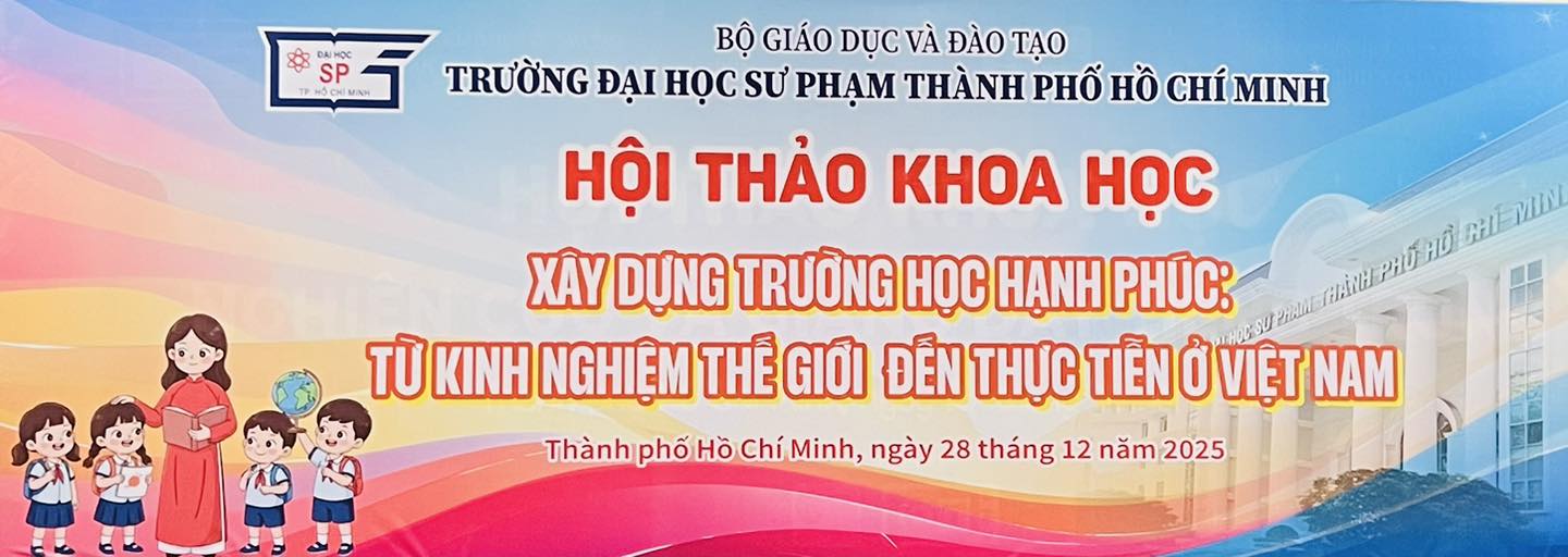 Hội thảo diễn ra tại Trường Đại học Sư phạm TP. Hồ Chí Minh với chủ đề “Xây dựng trường học hạnh phúc: Từ kinh nghiệm thế giới đến thực tiễn ở Việt Nam”, là diễn đàn khoa học uy tín, quy tụ đông đảo các nhà nghiên cứu, giảng viên và chuyên gia giáo dục trên toàn quốc, cùng chia sẻ những góc nhìn mới, mô hình hiệu quả và giải pháp mang tính ứng dụng cao nhằm kiến tạo môi trường giáo dục nhân văn – an toàn – hạnh phúc, trong đó người học được đặt ở vị trí trung tâm của mọi hoạt động giáo dục.