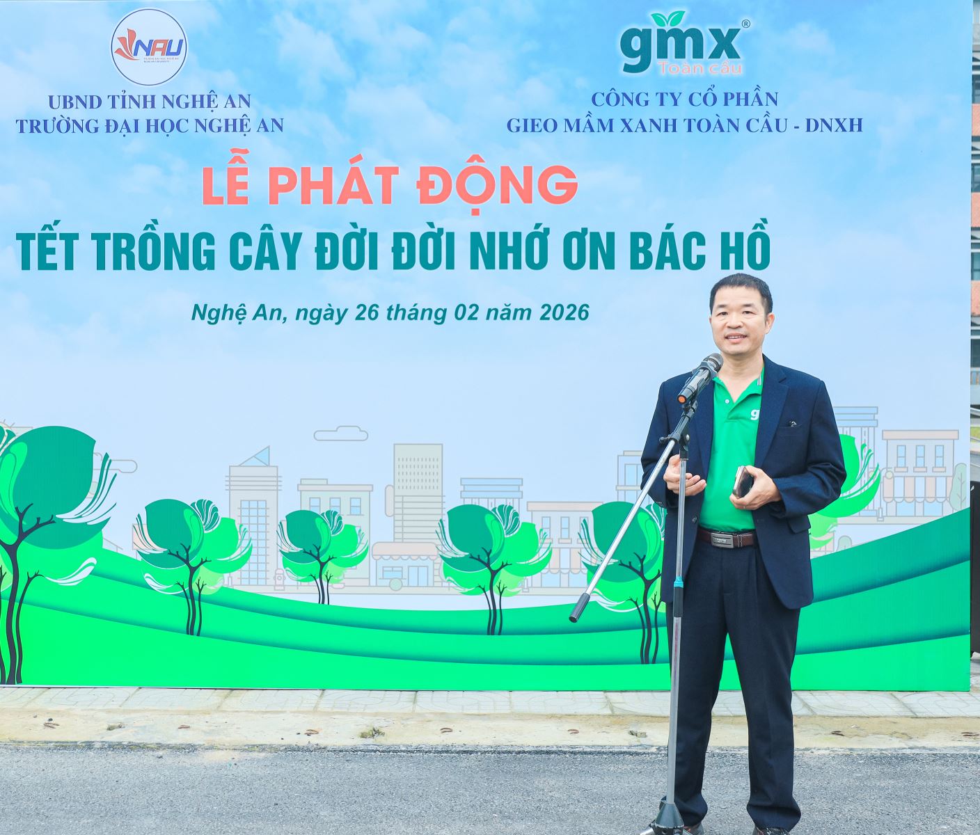 Hòa trong không khí rộn ràng của những ngày đầu xuân mới, sáng ngày 26/02/2026, tại Cơ sở 4 (Số 32, đường Hồ Sỹ Dương, phường Thành Vinh, tỉnh Nghệ An), Trường Đại học Nghệ An đã long trọng tổ chức Lễ phát động “Tết trồng cây đời đời nhớ ơn Bác Hồ” – một hoạt động thường niên mang ý nghĩa sâu sắc, góp phần lan tỏa thông điệp về trách nhiệm xã hội và khát vọng xây dựng môi trường giáo dục xanh – nhân văn – bền vững.