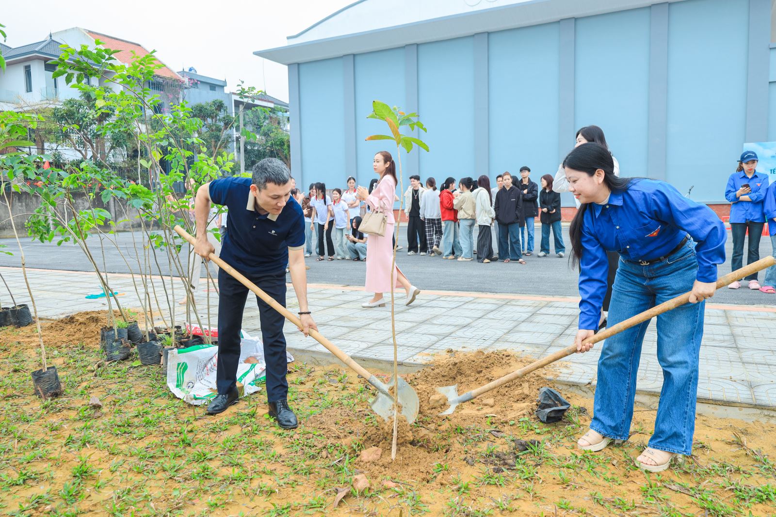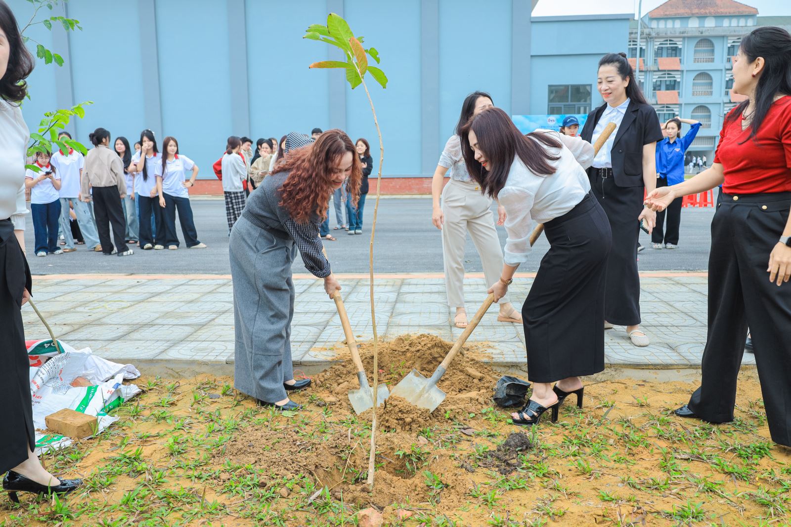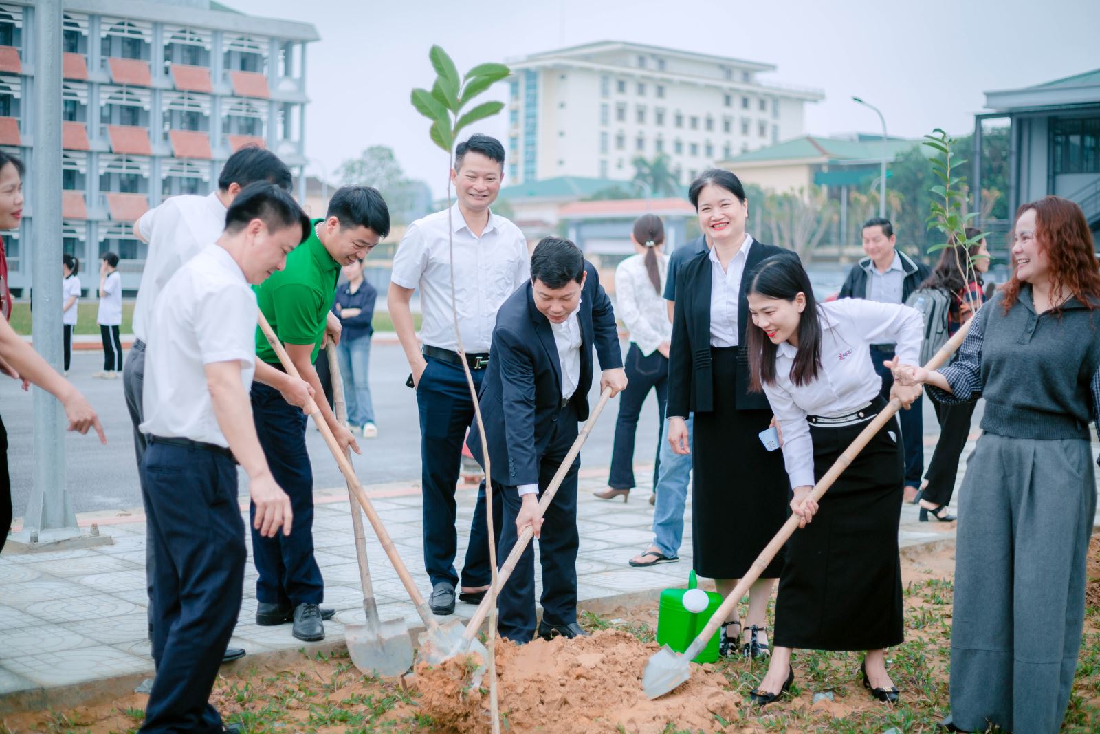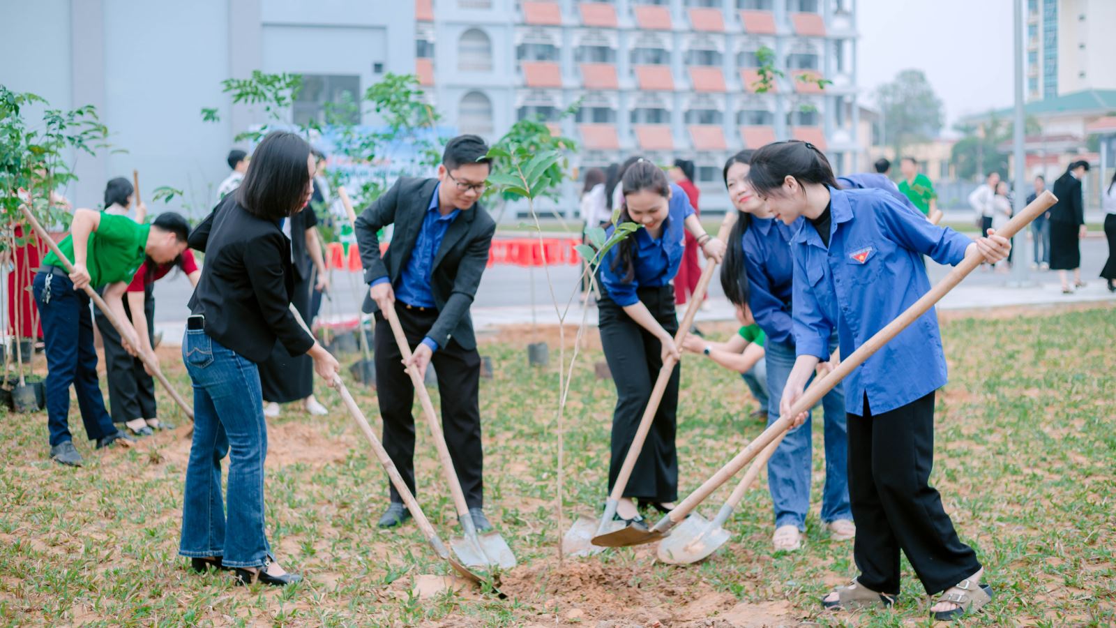 Ngay sau phần phát động, lãnh đạo Nhà trường, đại diện đơn vị tài trợ cùng các đại biểu, cán bộ, giảng viên và sinh viên đã cùng tham gia nghi thức trồng cây trong không khí hứng khởi, đoàn kết và đầy trách nhiệm.