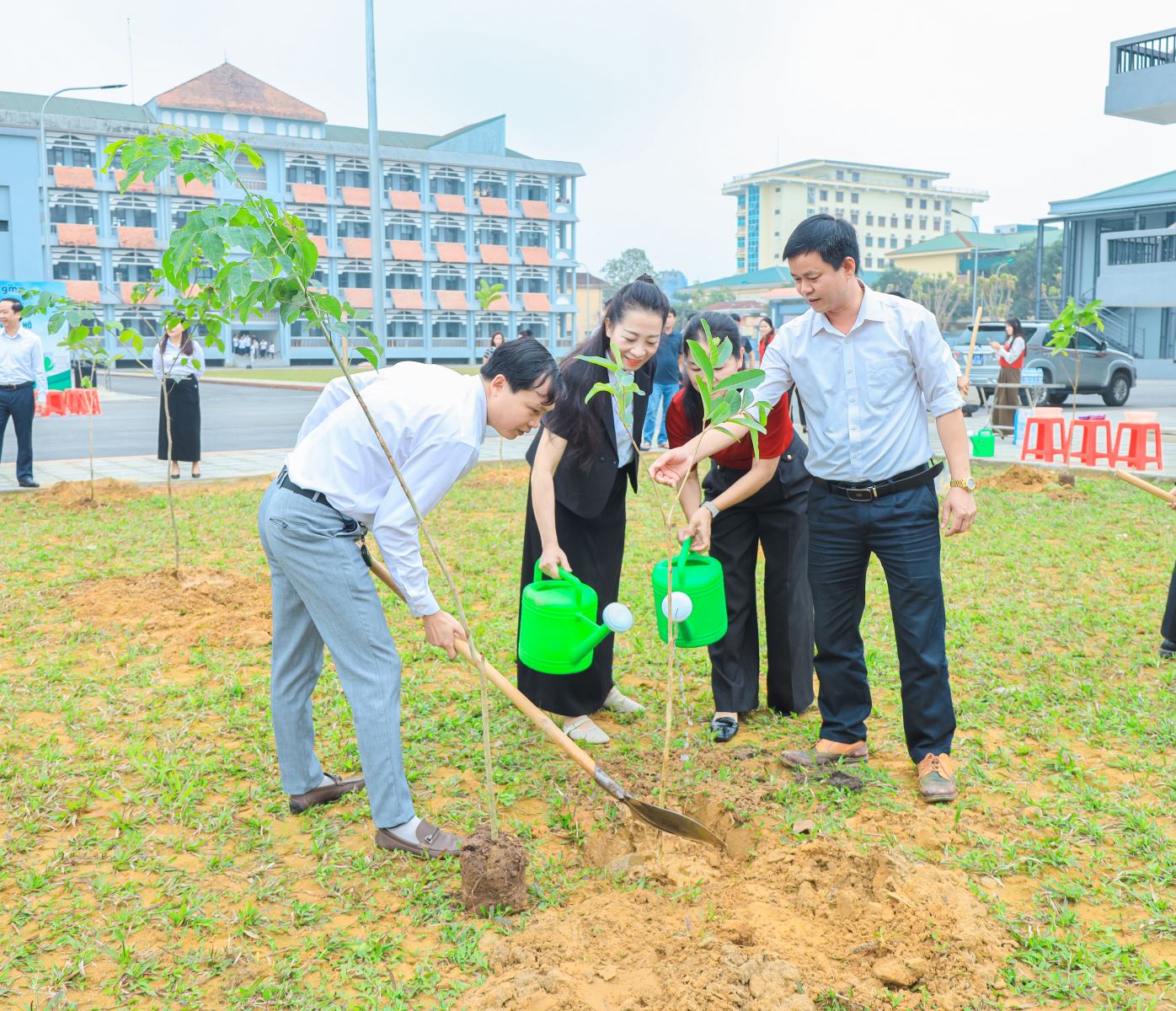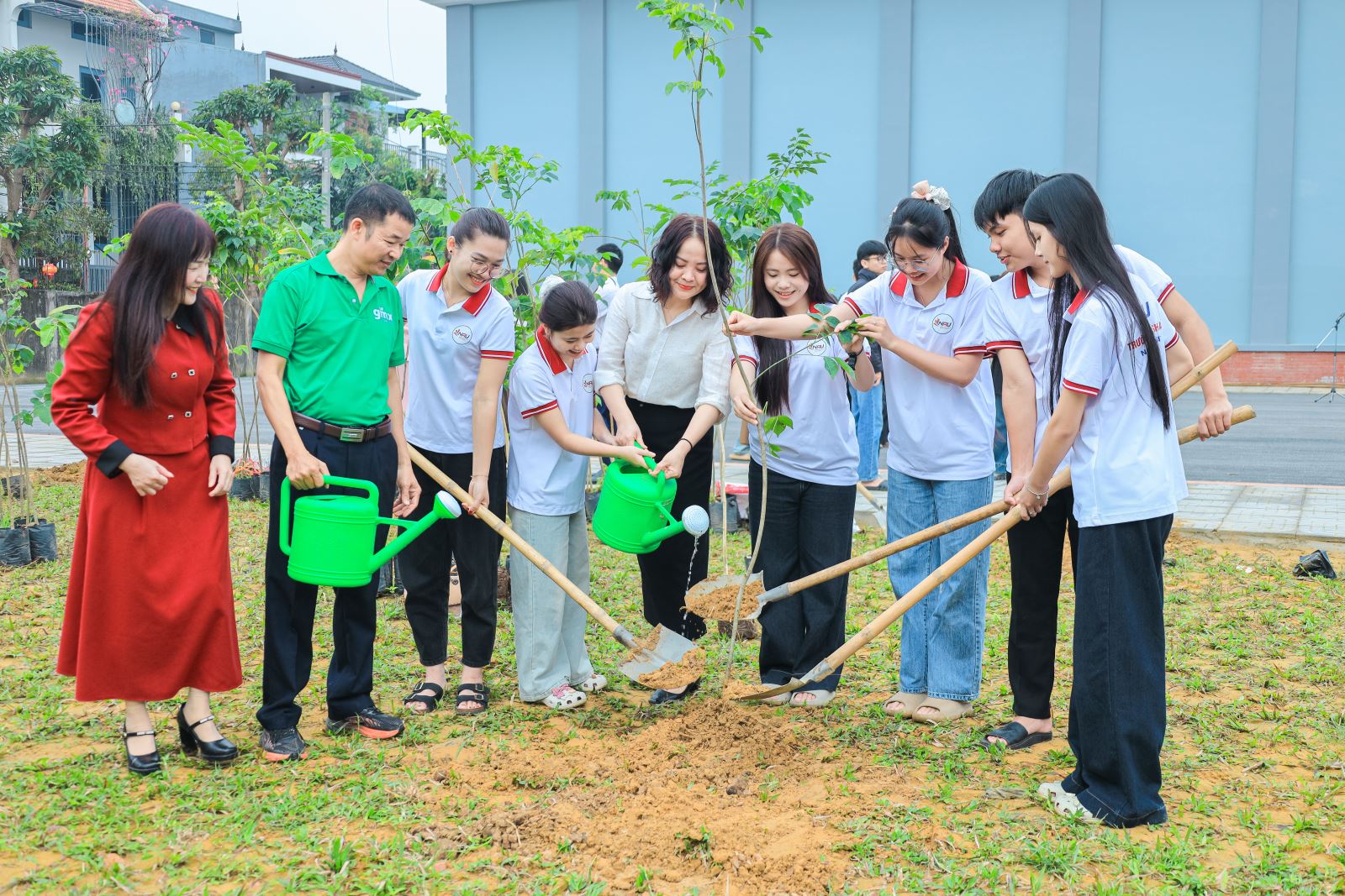 Với sự tài trợ của Công ty Gieo Mầm Xanh Toàn Cầu, 500 cây xanh đã được trao tặng, gồm: 100 cây bằng lăng, 100 cây hoa ban, 100 cây giáng hương, 100 cây dái dầu và 100 cây sao đen. Những hàng cây được vun trồng không chỉ góp phần làm đẹp cảnh quan Cơ sở 4 mà còn cải thiện chất lượng không khí, bảo tồn đa dạng sinh học và kiến tạo một hệ sinh thái học đường xanh, bền vững.