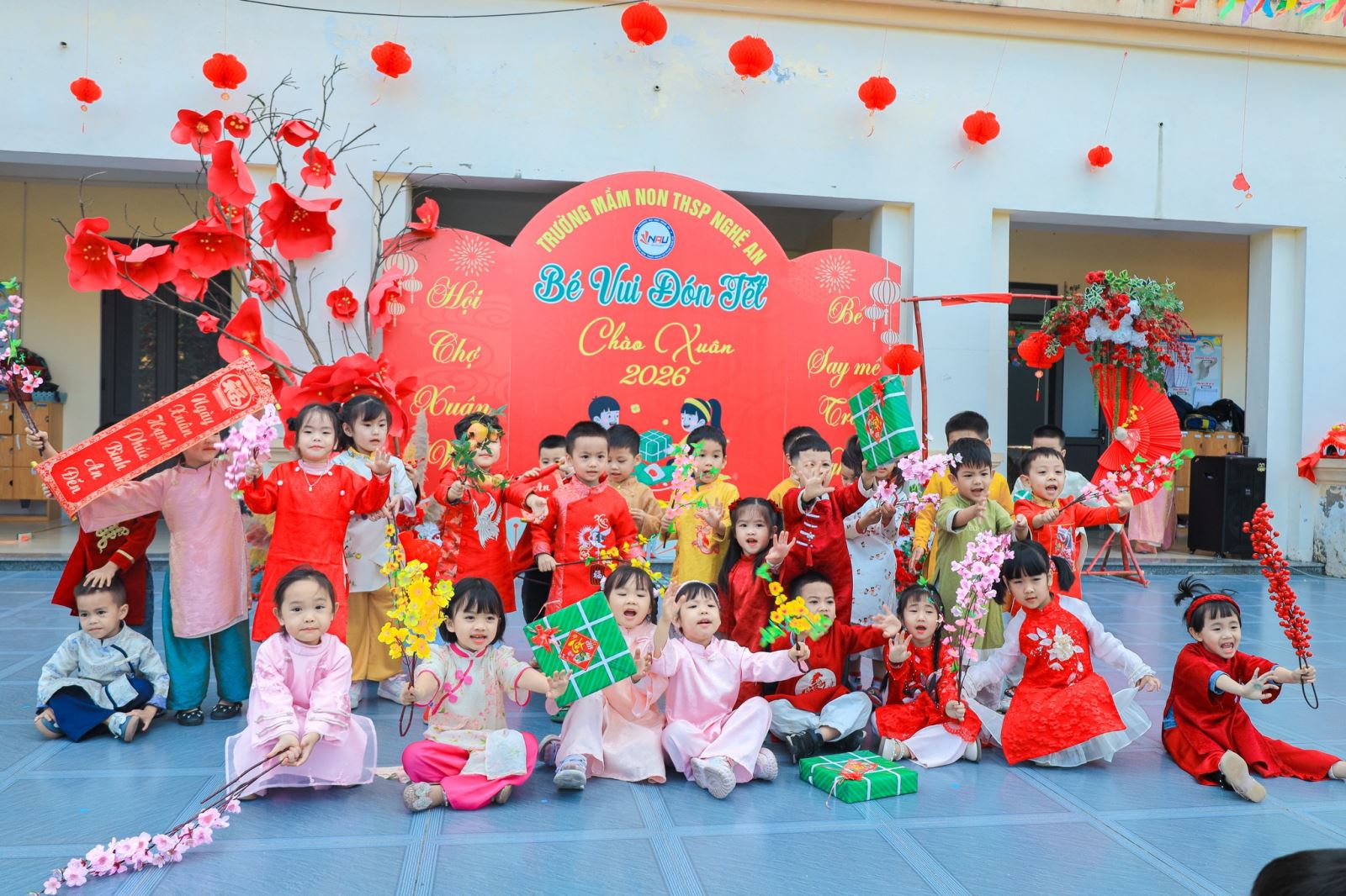 Chương trình “Bé vui đón Tết – Chào xuân 2026” do Trường Mầm non THSP – Trường Đại học Nghệ An tổ chức đã diễn ra trong không khí rộn ràng, ấm áp và ngập tràn cảm xúc. Dẫu chương trình đã khép lại, nhưng dư âm của một mùa xuân yêu thương vẫn còn đọng lại thật sâu trong lòng các bé, quý phụ huynh và tất cả những người tham dự phiên chợ Tết THSP – nơi mà ai cũng lưu luyến mãi chẳng muốn rời.