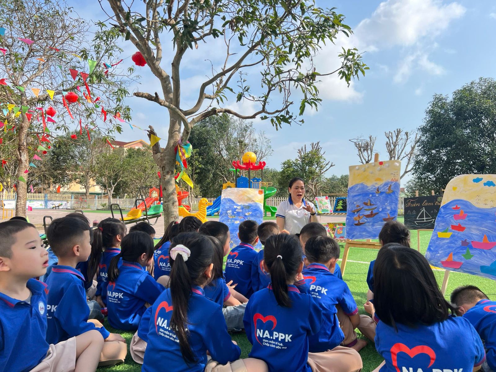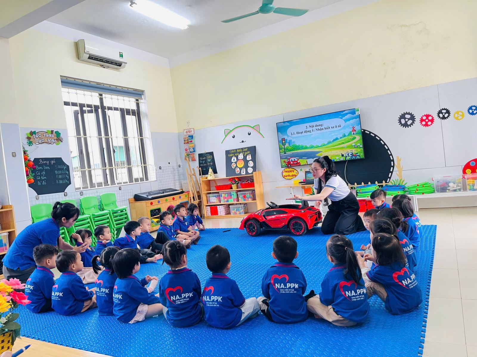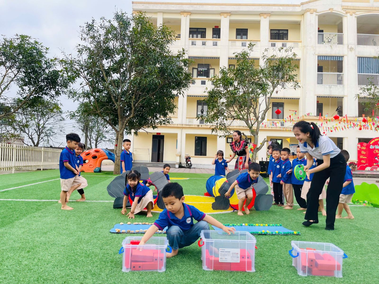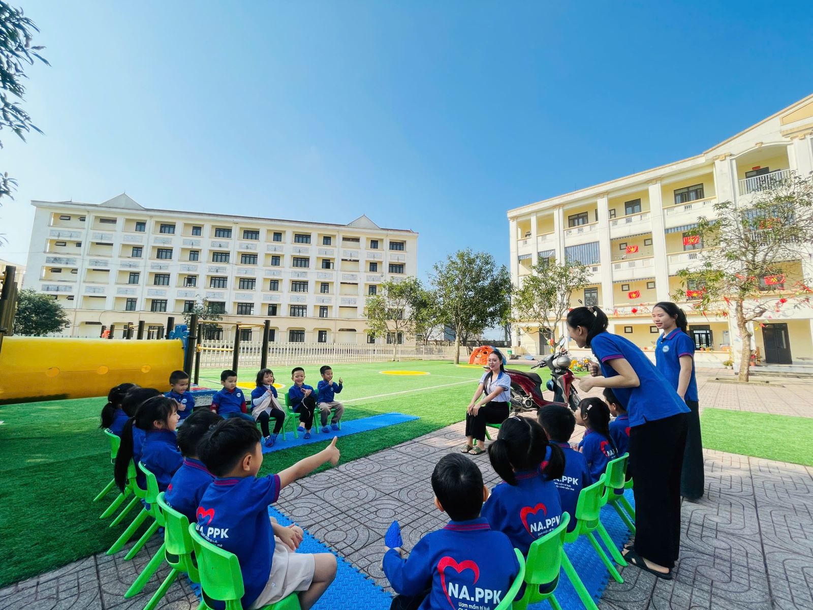 Các hoạt động giáo dục được thiết kế đa dạng, phong phú từ lĩnh vực phát triển ngôn ngữ, nhận thức, thẩm mỹ đến thể chất và kỹ năng xã hội. Điểm nổi bật trong các tiết dạy là sự đổi mới trong hình thức tổ chức: ứng dụng công nghệ thông tin hiệu quả, sử dụng đồ dùng – học liệu trực quan hấp dẫn, tạo môi trường học tập thân thiện, gần gũi và đầy tính khám phá. Trẻ không chỉ “học bằng chơi, chơi mà học” mà còn được trải nghiệm, tương tác và thể hiện bản thân một cách tự nhiên, tự tin.
