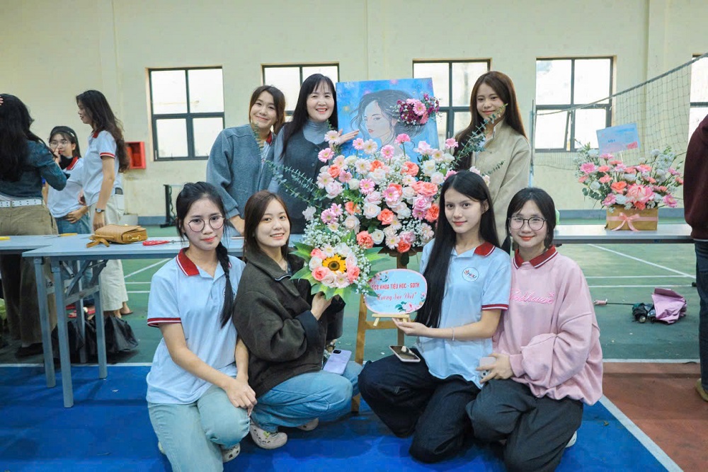 Trong hội thi, Chi đoàn K12 Giáo dục Tiểu học – Khoa Tiểu học đã xuất sắc đạt Giải Ba với tác phẩm “Hương Sắc Việt”. Tác phẩm gây ấn tượng bởi bố cục hài hòa, sự kết hợp tinh tế của nhiều loài hoa mang sắc màu truyền thống, thể hiện vẻ đẹp dịu dàng, đằm thắm của người phụ nữ Việt Nam. Qua đó, nhóm tác giả gửi gắm thông điệp trân trọng và tri ân những người phụ nữ – những người luôn âm thầm cống hiến và lan tỏa yêu thương trong cuộc sống.