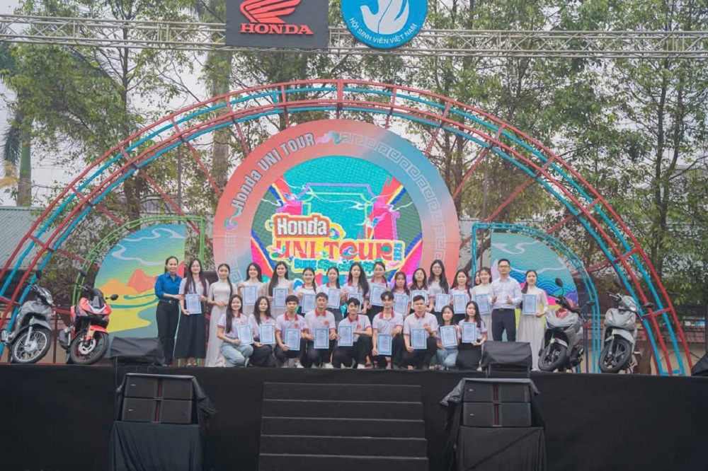Diễn ra trong suốt một ngày, Honda UNI TOUR 2025 mang đến cho sinh viên Trường Đại học Nghệ An cơ hội tham gia các hoạt động tương tác, tìm hiểu kiến thức về an toàn giao thông, khám phá công nghệ xe máy, trải nghiệm thực tế về các dịch vụ và sản phẩm mới. Các khu vực trưng bày, sân chơi trí tuệ, thử thách thể thao và trải nghiệm ứng dụng công nghệ đã thu hút hàng nghìn lượt sinh viên tham gia. Chương trình không chỉ dừng lại ở hoạt động giải trí – trải nghiệm mà còn hướng tới mục tiêu giáo dục, giúp sinh viên nâng cao nhận thức về văn hóa giao thông, chuẩn bị hành trang tốt hơn cho cuộc sống và công việc trong tương lai. Trong khuôn khổ chương trình, Trung tâm Hỗ trợ và Phát triển Sinh viên Việt Nam đã trao tặng những suất học bổng trị giá 1.000.000 đồng cho các sinh viên vượt khó học giỏi của Trường Đại học Nghệ An. Đây là những sinh viên có hoàn cảnh đặc biệt nhưng vẫn nỗ lực không ngừng trong học tập, rèn luyện và tham gia hoạt động xã hội. Những suất học bổng này mang ý nghĩa động viên to lớn, không chỉ hỗ trợ về mặt vật chất mà còn thể hiện sự ghi nhận đối với tinh thần vươn lên của các em. Điều đó cho thấy sự đồng hành của các tổ chức, doanh nghiệp đối với sứ mệnh giáo dục và đào tạo thế hệ trẻ.