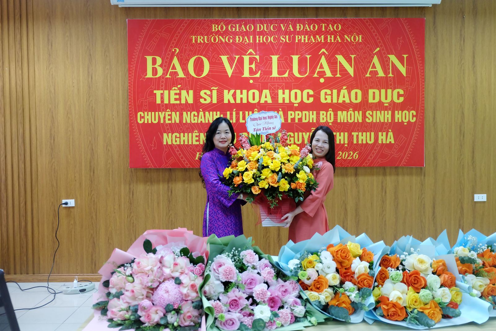 Trong lộ trình thực hiện chiến lược phát triển nguồn nhân lực chất lượng cao, sáng ngày 20/03/2026, Khoa Mầm non – Trường Đại học Nghệ An nồng nhiệt chúc mừng NCS Nguyễn Thị Thu Hà đã bảo vệ xuất sắc luận án Tiến sĩ tại Trường Đại học Sư phạm Hà Nội. Đây là minh chứng cho sự nỗ lực bền bỉ của cá nhân giảng viên và định hướng đầu tư đúng đắn vào đội ngũ trí thức của Nhà trường.