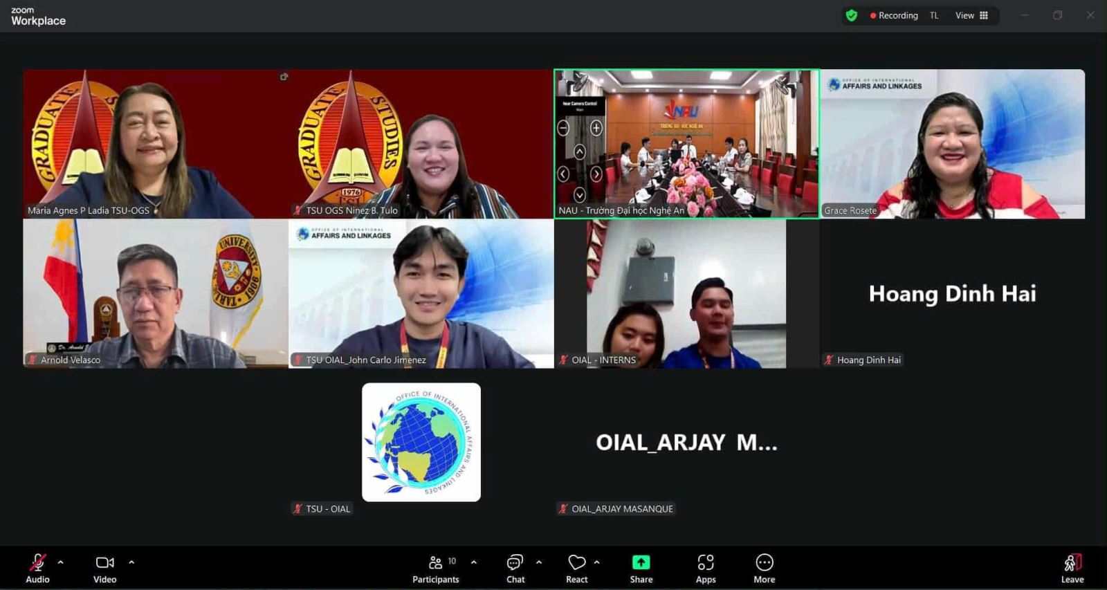 Một số hình ảnh của buổi làm việc trực tuyến bằng hình thức online giữa Trường Đại học Nghệ An với Trường Đại học Tarlac