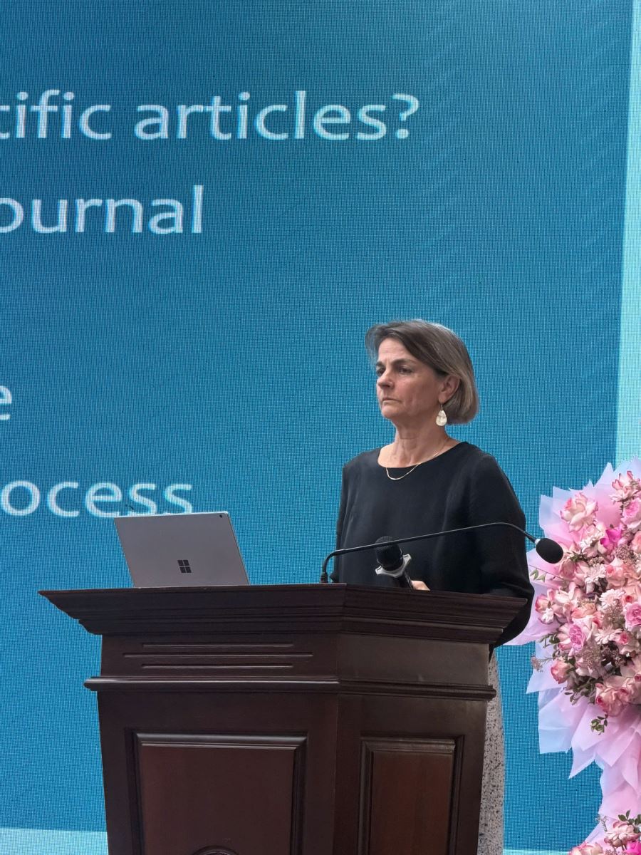 Tại buổi tập huấn chuyên gia Ingrid Van De Stadt đã chia sẻ những kiến thức nền tảng và kinh nghiệm thực tiễn trong quá trình xây dựng, hoàn thiện và gửi bài tới các tạp chí quốc tế uy tín.