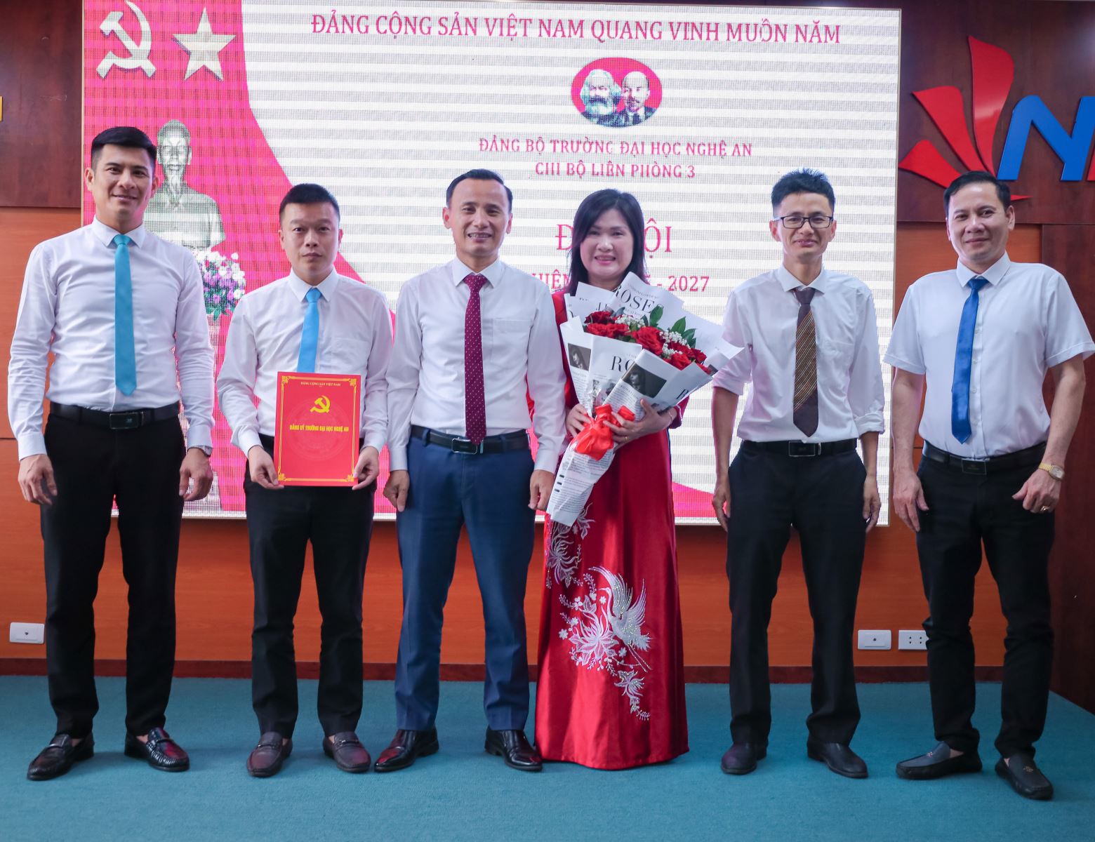 Thực hiện các quy định, hướng dẫn của Trung ương, của Tỉnh ủy, Đảng bộ trường Đại học Nghệ An, Đại hội Chi bộ Liên phòng 3 nhiệm kỳ 2025 – 2030 chỉ tiến hành 02 nội dung: (1) Tổng kết thực hiện nhiệm vụ nhiệm kỳ 2020 – 2025 và xác định phương hướng, nhiệm vụ, giải pháp nhiệm kỳ 2025 – 2030; (2) Thảo luận, đóng góp ý kiến dự thảo các văn kiện Đại hội Đại biểu Đảng bộ trường Đại học Nghệ An nhiệm kỳ 2025-2030. Do đó, tại Đại hội không thực hiện bầu Cấp ủy mà chỉ công bố Quyết định chỉ định nhân sự Ban Chấp hành, Bí thư, Phó Bí thư Chi bộ Liên phòng 3, nhiệm kỳ 2025 – 2027 của Ban Thường vụ Đảng ủy trường Đại học Nghệ An gồm 05 đồng chí: