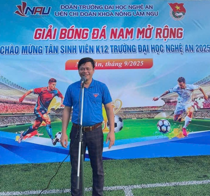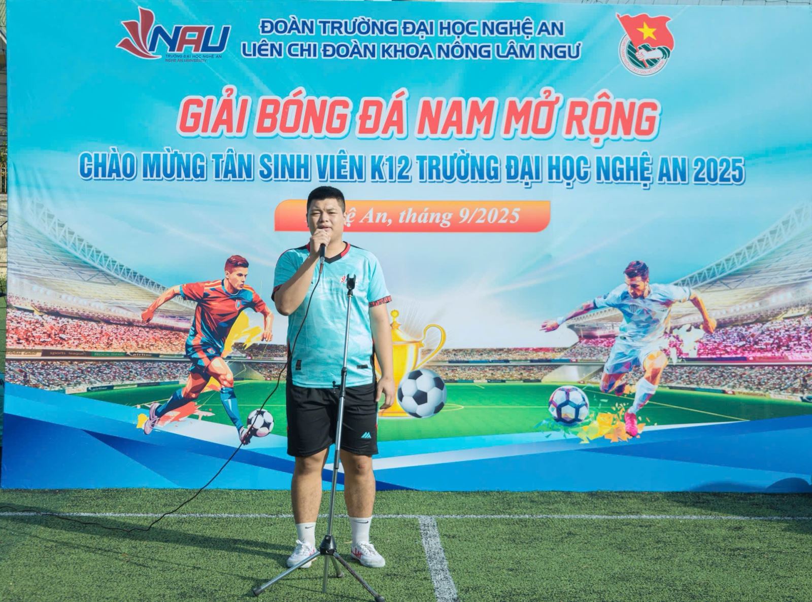 Sáng ngày 09/9/2025, tại sân vận động Trường Đại học Nghệ An đã diễn ra Lễ khai mạc Giải bóng đá nam mở rộng chào mừng Tân sinh viên K12. Đây là hoạt động thể thao ý nghĩa nằm trong chuỗi sự kiện Chào đón Tân sinh viên, nhằm tạo sân chơi lành mạnh, gắn kết sinh viên các khóa, đồng thời lan tỏa tinh thần đoàn kết, giao lưu hữu nghị giữa cán bộ, giảng viên, cựu sinh viên và lưu học sinh Lào.
