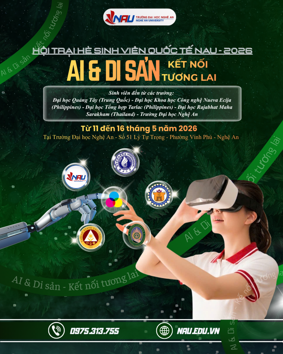 Trong hành trình quốc tế hóa giáo dục và kiến tạo môi trường học tập toàn cầu, Trường Đại học Nghệ An (NAU) chính thức triển khai Chương trình Trại hè sinh viên quốc tế – NAU International Summer Camp 2026 với chủ đề “AI & Di sản – Kết nối tương lai”.