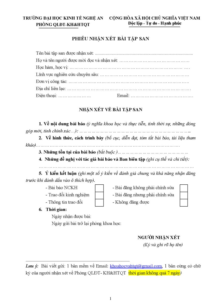 Phiếu nhận xét bài tập san "Thông tin khoa học kinh tế - kỹ thuật" 10/08/2020 08:47 8895 lượt xem Tải phiếu nhận xét bài tập san "Thông tin khoa học kinh tế - kỹ thuật">>