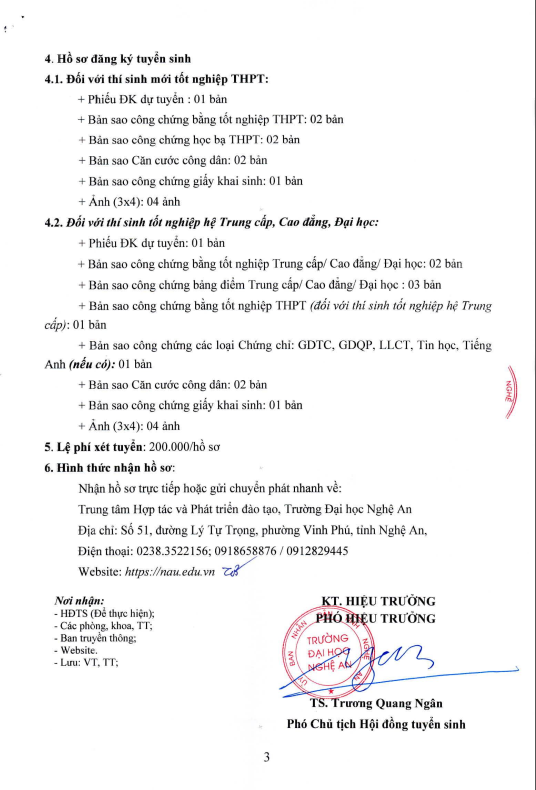TRƯỜNG ĐẠI HỌC NGHỆ AN THÔNG BÁO ĐIỂM XÉT TUYỂN ĐẠI HỌC CHÍNH QUY - ĐỢT 3 NĂM 2025