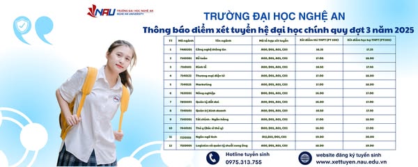 TRƯỜNG ĐẠI HỌC NGHỆ AN THÔNG BÁO ĐIỂM XÉT TUYỂN ĐẠI HỌC CHÍNH QUY - ĐỢT 3 NĂM 2025