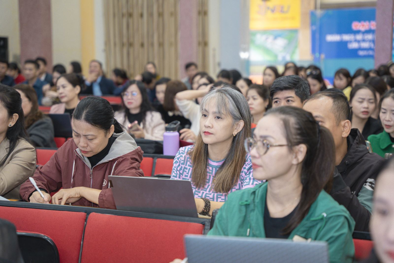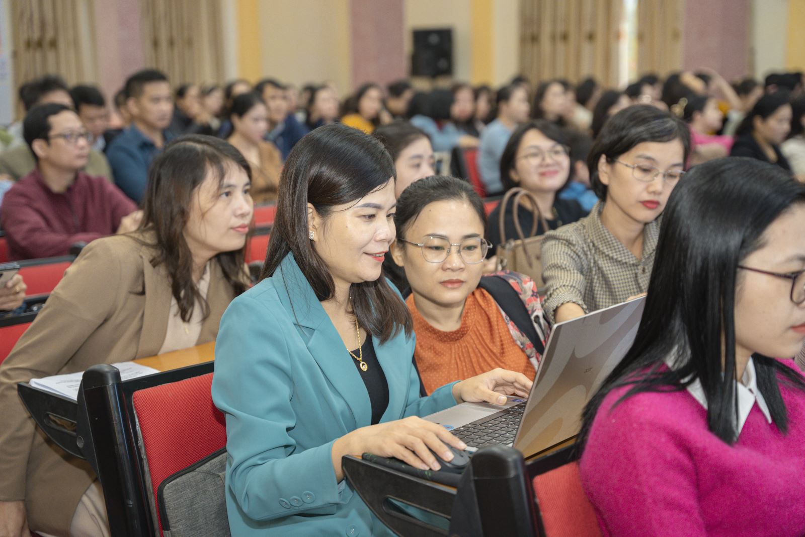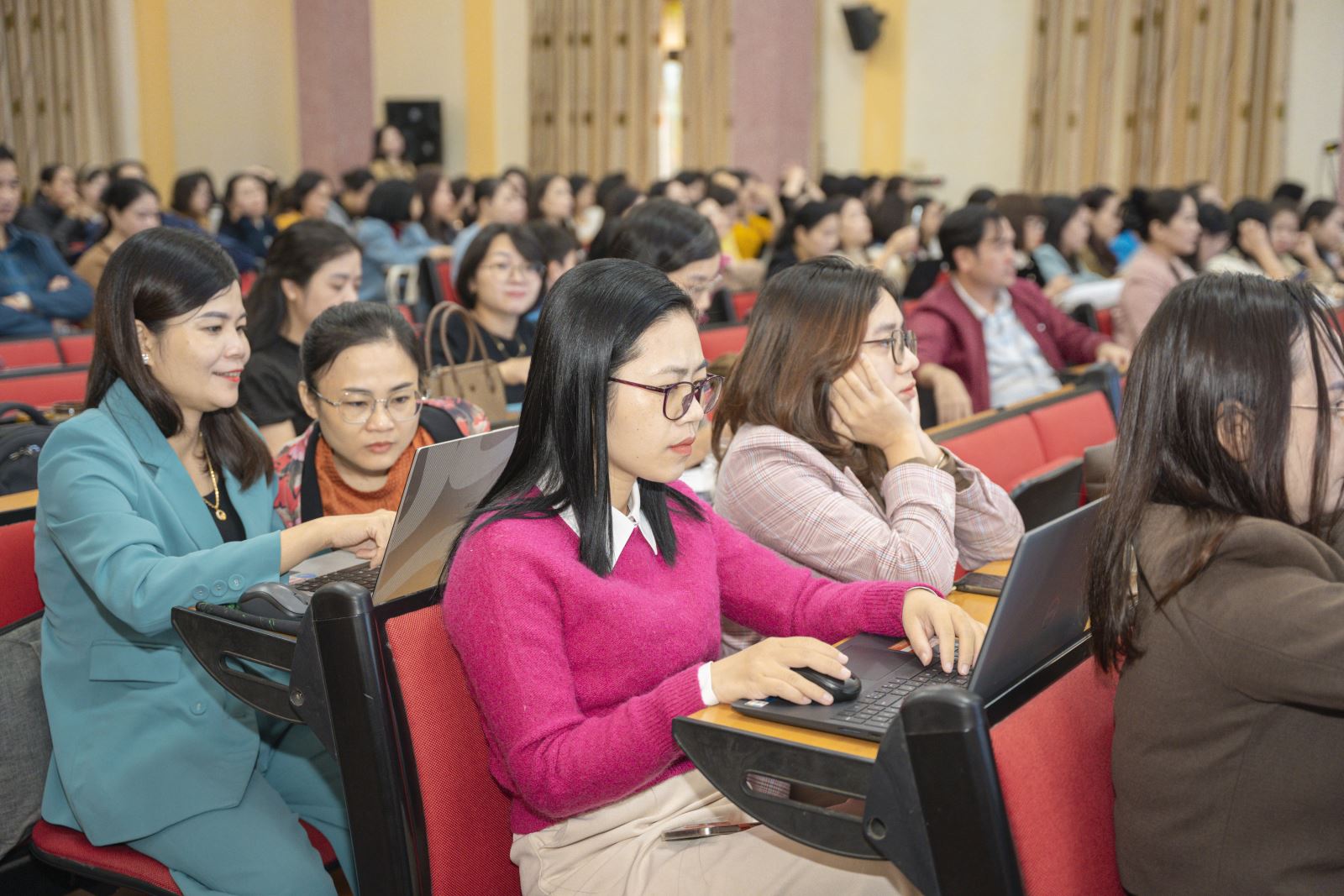 Các giảng viên, giáo viên Trường Đại học Nghệ An tham gia buổi tập huấn