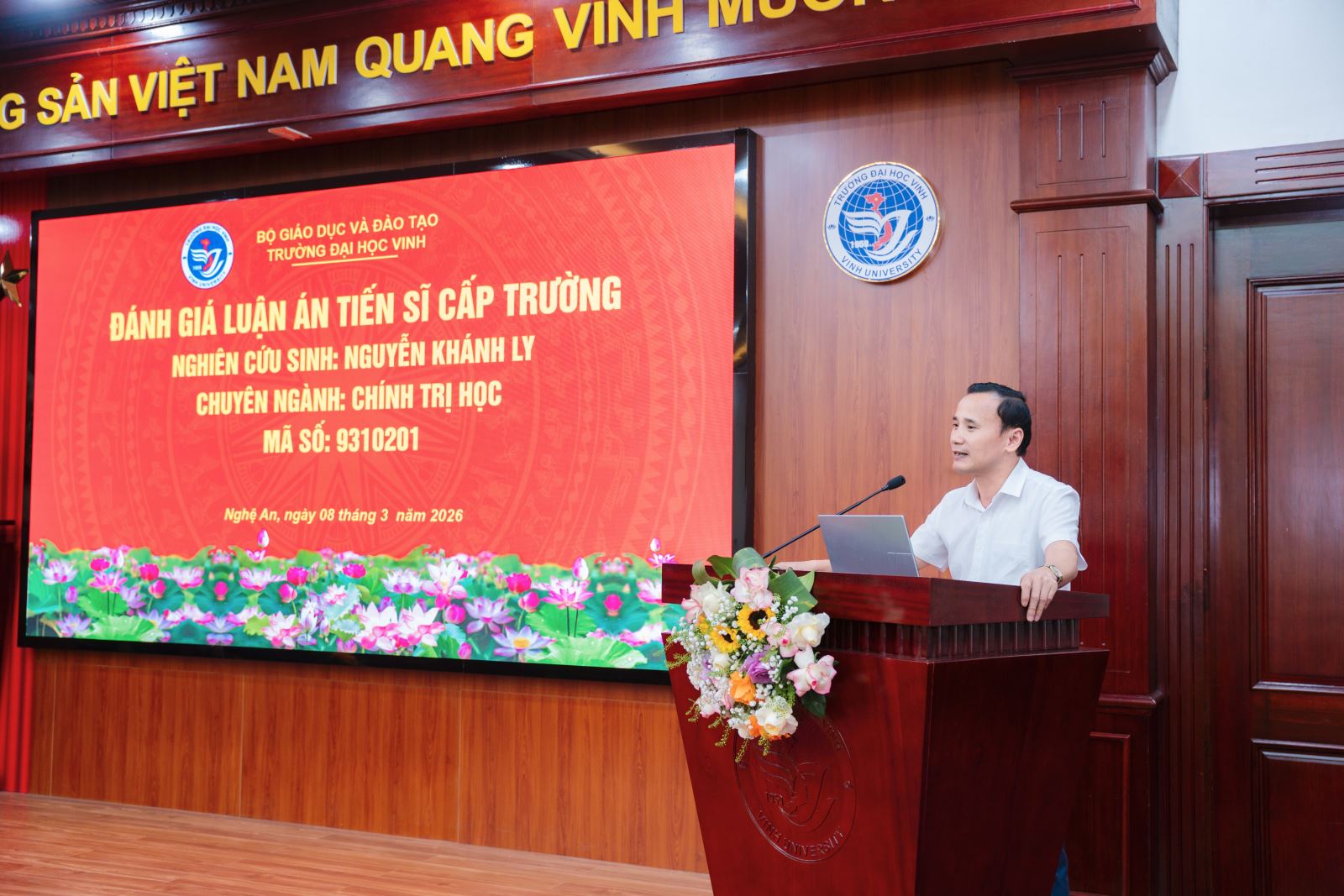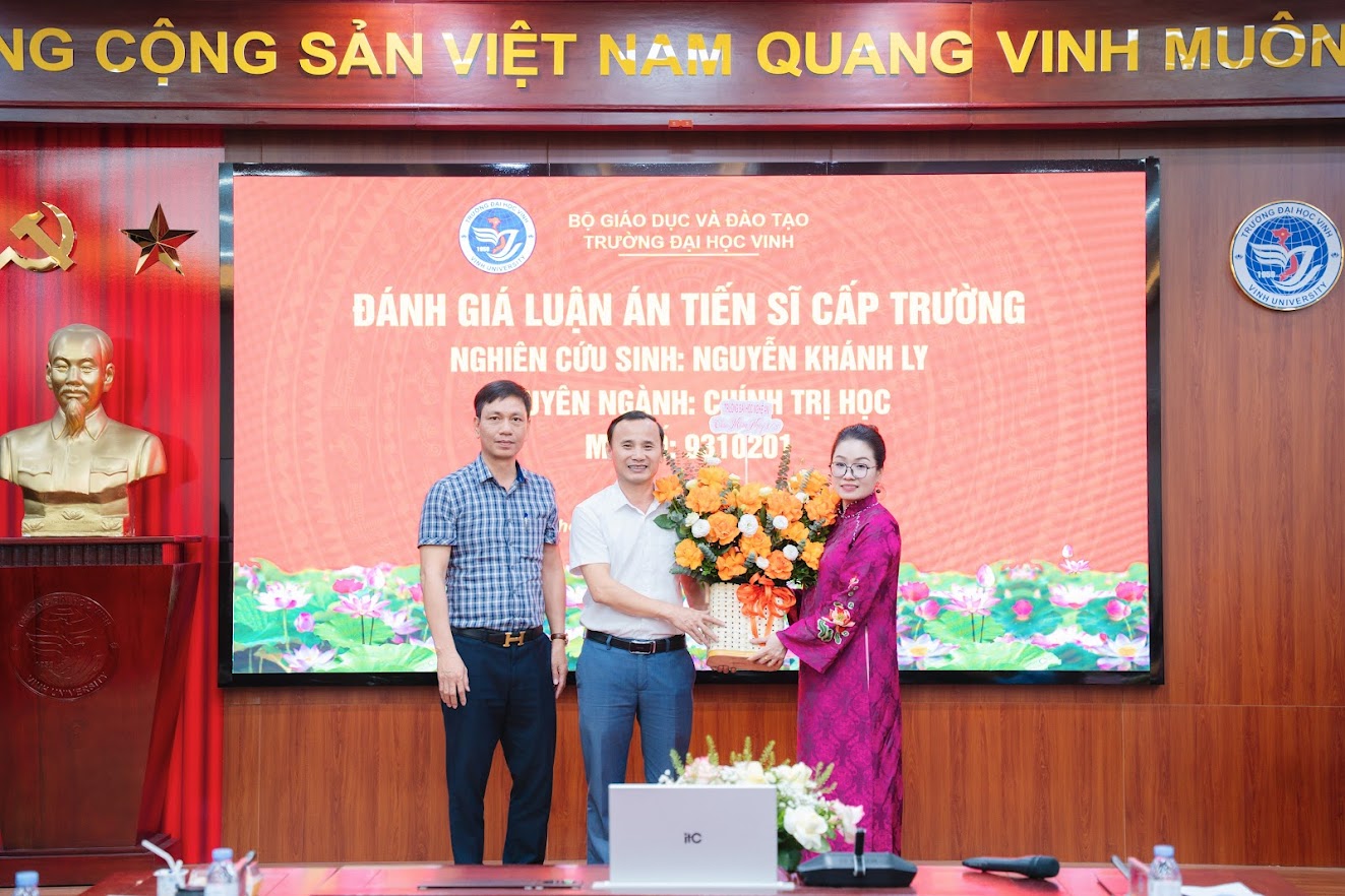 Sáng 08/3/2026, tại Trường Đại học Vinh, NCS Nguyễn Khánh Ly – giảng viên Khoa Khoa học cơ bản, Trường Đại học Nghệ An đã bảo vệ thành công luận án Tiến sĩ chuyên ngành Chính trị học. Mã số: 9 31 01 02 với đề tài: “Xây dựng đội ngũ cán bộ cấp cơ sở người dân tộc thiểu số: Nghiên cứu trường hợp miền Tây tỉnh Nghệ An”, đề tài dưới sự hướng dẫn của PGS.TS Nguyễn Thái Sơn và TS. Trần Cao Nguyên. Thành quả này không chỉ là dấu mốc quan trọng trong hành trình học thuật của cá nhân nghiên cứu sinh mà còn góp phần khẳng định chất lượng đội ngũ giảng viên và môi trường nghiên cứu khoa học tại Trường Đại học Nghệ An (NAU).