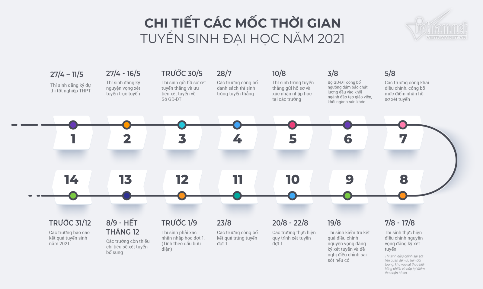Theo đó, dự kiến thí sinh đăng ký dự thi tốt nghiệp THPT từ ngày 27/4 đến 17 giờ ngày 11/5; đăng ký nguyện vọng xét tuyển trực tuyến từ ngày 27/4 đến 17 giờ ngày 16/5.