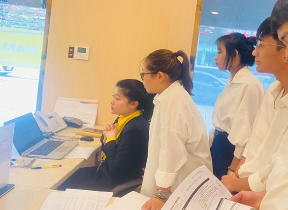 SV Tài chính – Ngân hàng được chuyên viên Ngân hàng Nam Á hướng dẫn tư vấn khách hàng, làm quen với các chứng từ của ngân hàng
