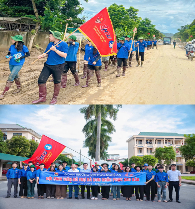 Hành trình thiện nguyện "Chung tay cùng đồng bào khắc phục hậu quả do cơn bão số 3" do Đoàn Thanh niên – Hội Sinh viên NAU tổ chức đã thu hút sự tham gia sôi nổi của đông đảo sinh viên đến từ nhiều khoa, nổi bật là sinh viên Khoa Tài chính – Ngân hàng và Câu lạc bộ “Viết tiếp ước mơ”. Họ không quản ngại bùn lầy, mưa gió; họ cùng nhau dọn dẹp từng lớp bùn, khôi phục lại lớp học cho các em nhỏ, dựng lại từng mái nhà cho bà con.