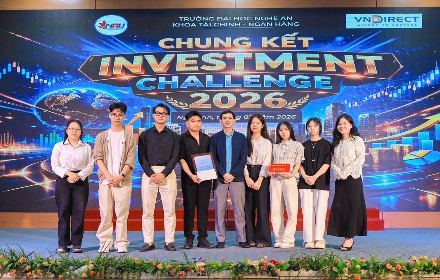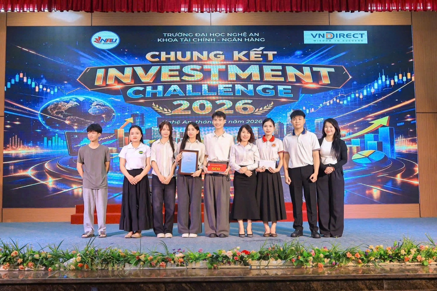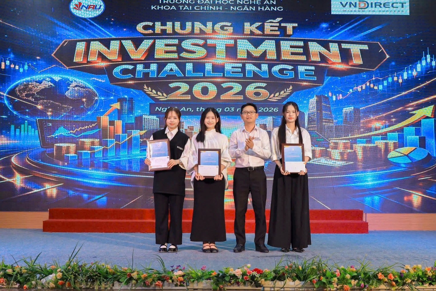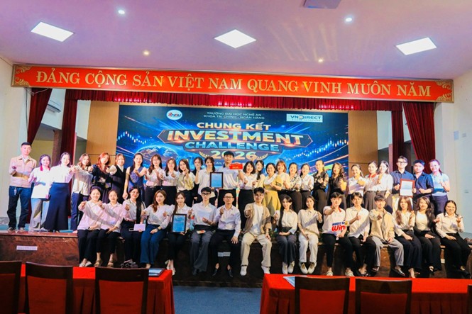 Đêm Chung kết Investment Challenge 2026 được tổ chức vào tối ngày 20 tháng 3 năm 2026 tại Trường Đại học Nghệ An đã chính thức khép lại, đánh dấu chặng cuối của một hành trình đầy trí tuệ, bản lĩnh và cảm xúc của các đội thi xuất sắc nhất.