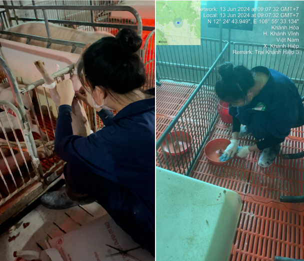 Trong thời gian thực tập tại Trại heo nái Khánh Hiệp 3, điều làm tôi xúc động nhất là sự quan tâm sâu sắc, sự chỉ bảo tận tình của các anh kỹ sư và các anh chị công nhân. Trong suốt 3 tháng thực tập, các anh chị đã luôn quan tâm, giúp đỡ, hỏi han, động viên và chỉ bảo tôi từng bước đi đầu tiên, các anh chị đã coi tôi như người em luôn tạo mọi điều kiện thuận lợi để tôi có thể phát huy hết năng lực của mình. Ở trại heo nái khánh hiệp 3 tôi được làm quen, tiếp xúc và học hỏi rất nhiều kinh nghiệm mà tôi chưa từng có được khi ngồi trên giảng đường đại học. Tôi từ cô sinh viên với biết bao mơ mộng, vô tư, giờ đây phải nhập cuộc thích nghi từ giờ giấc đến trang phục, từ lời ăn tiếng nói, từ thái độ làm việc. Đến với bên đẻ, tôi được thực tập ở bộn phận đứng chuồng rồi học đỡ đẻ sau đấy tôi được chuyển sang tổ thú y học bấm thiến, ghép heo, điều trị, tách lọc heo, xuất heo... được anh Thủy kỹ sư phụ trách hướng dẫn. Khi làm việc cùng anh, tôi có những nỗi lo lắng của riêng mình, lo lắng về công việc được giao có hoàn thành một cách tốt nhất, lo lắng về cách ứng xử có được hài lòng hay lo lắng anh Thủy sẽ không thích một đứa vốn không giỏi ăn nói như mình. Tất cả đều có trong suy nghĩ của tôi lúc đó. Tôi đã cố gắng và tự nhủ bản thân dù có mệt đến đâu cũng phải nỗ lực lên, cho tới khi tiếp xúc làm việc với anh, những cảm xúc trở nên tích cực hơn. Tôi cảm thấy rất vui khi được anh quan tâm, chỉ bảo, hướng dẫn rất tận tình, anh luôn tạo môi trường làm việc vui vẻ cho mọi người điều đấy tăng thêm động lực để cố gắng hoàn thành tốt nhiệm vụ. Ngày tháng trôi qua, ngày tháng thực tập được tô điểm thêm, được thú vị hơn khi tôi chuyển qua làm việc bên tổ phối, và ở đây tôi được anh Đạt kỹ sư và tất cả các anh bên tổ phối chỉ bảo, hướng dẫn, giúp đỡ tôi rất nhiều và cũng không thể thiếu những cuộc đùa vui trêu nhau để quên đi cái mệt.