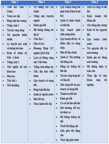· Ngành đào tạo: Quản lý đất đai