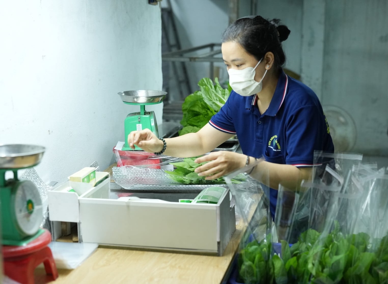 Khâu sơ chế rau được kiểm soát nghiêm ngặt.